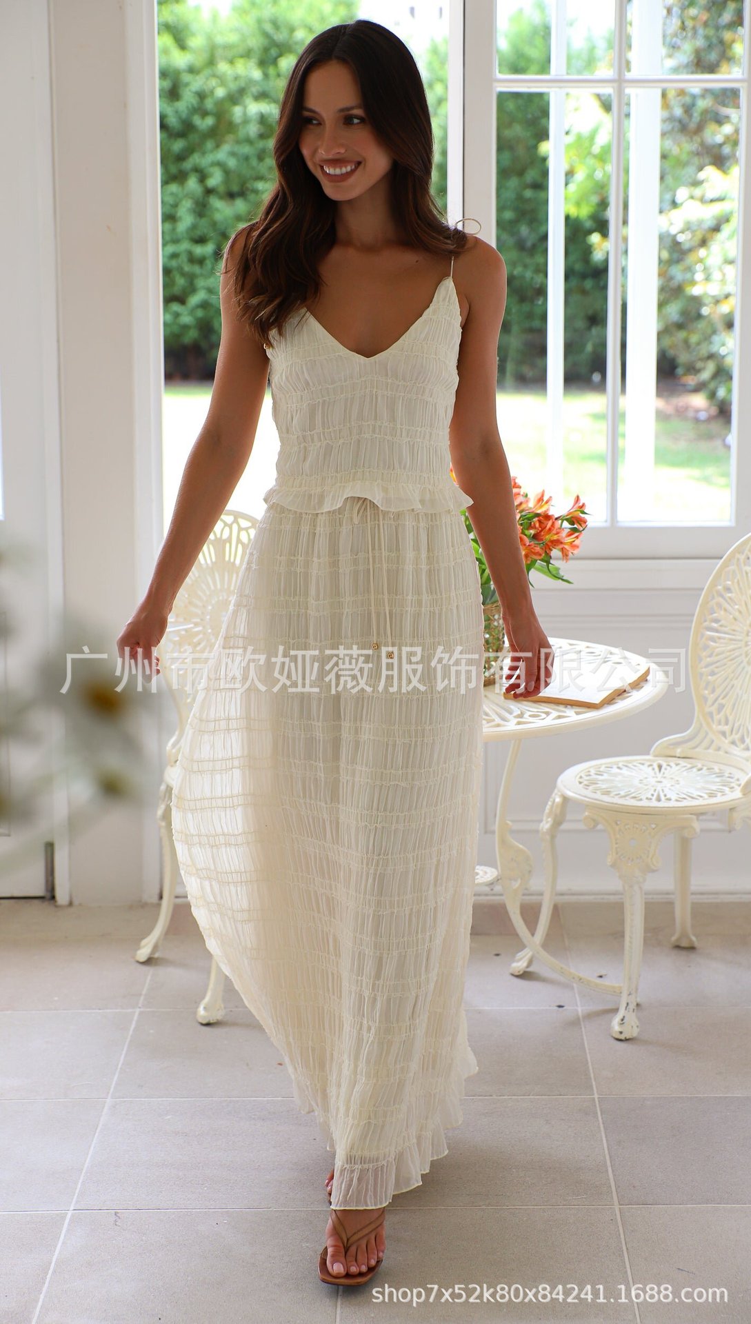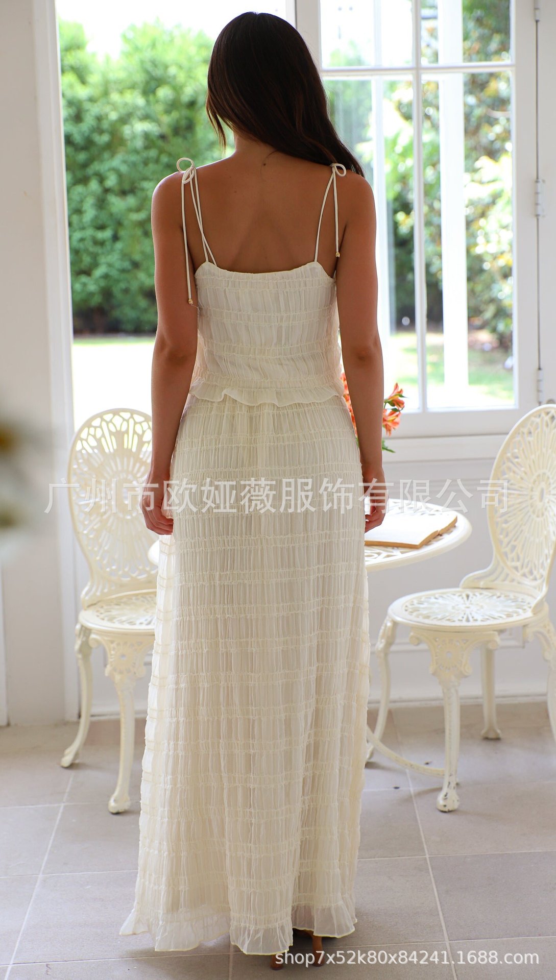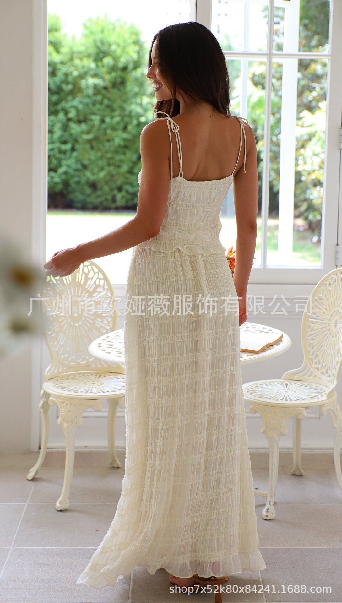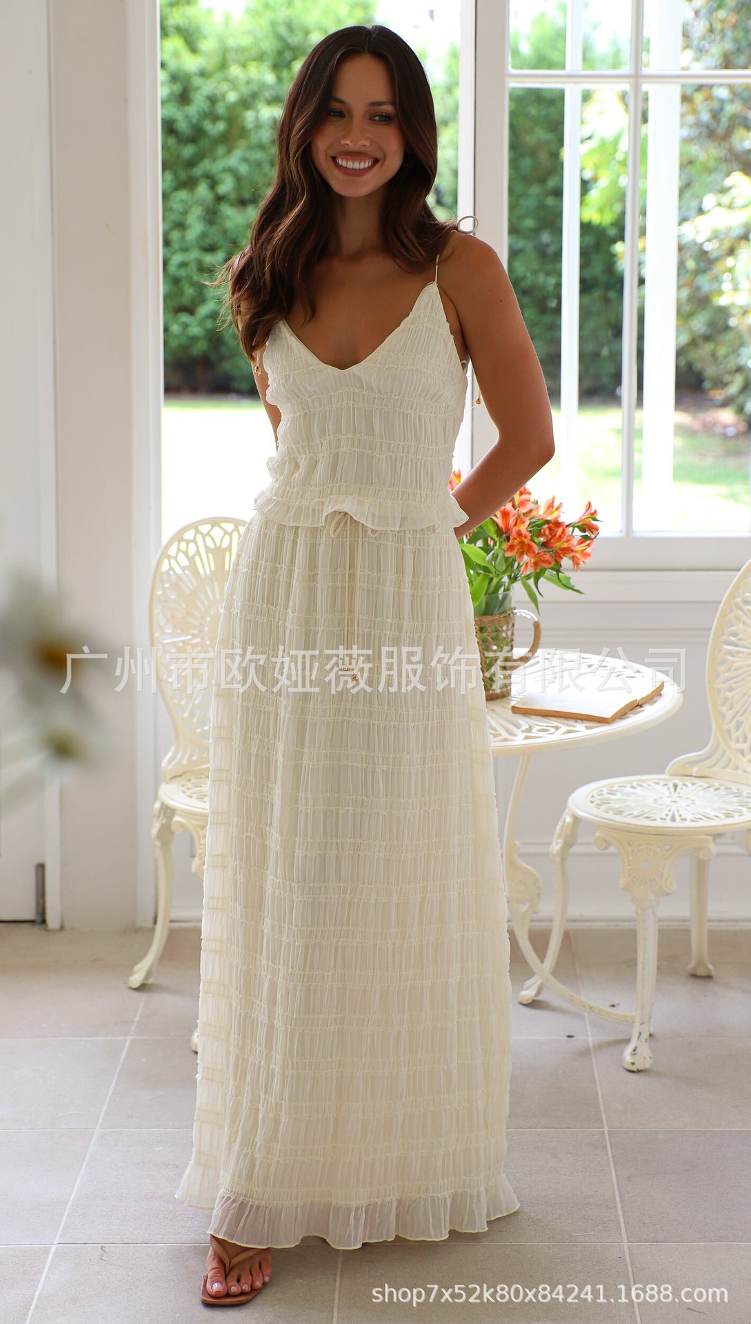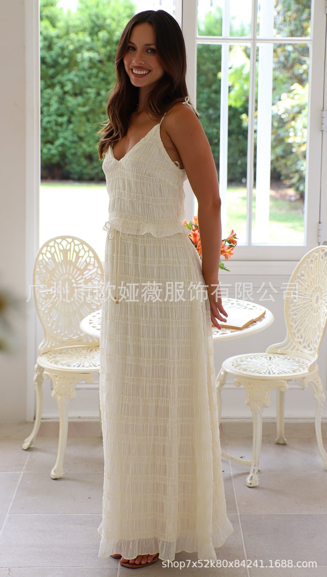 아마존 여름 핫 솔리드 컬러 우아한 쉬폰 슬링 롱 케이크 원피스 올 매치 플리츠 레이스 롱 원피스 세트스토어 가기