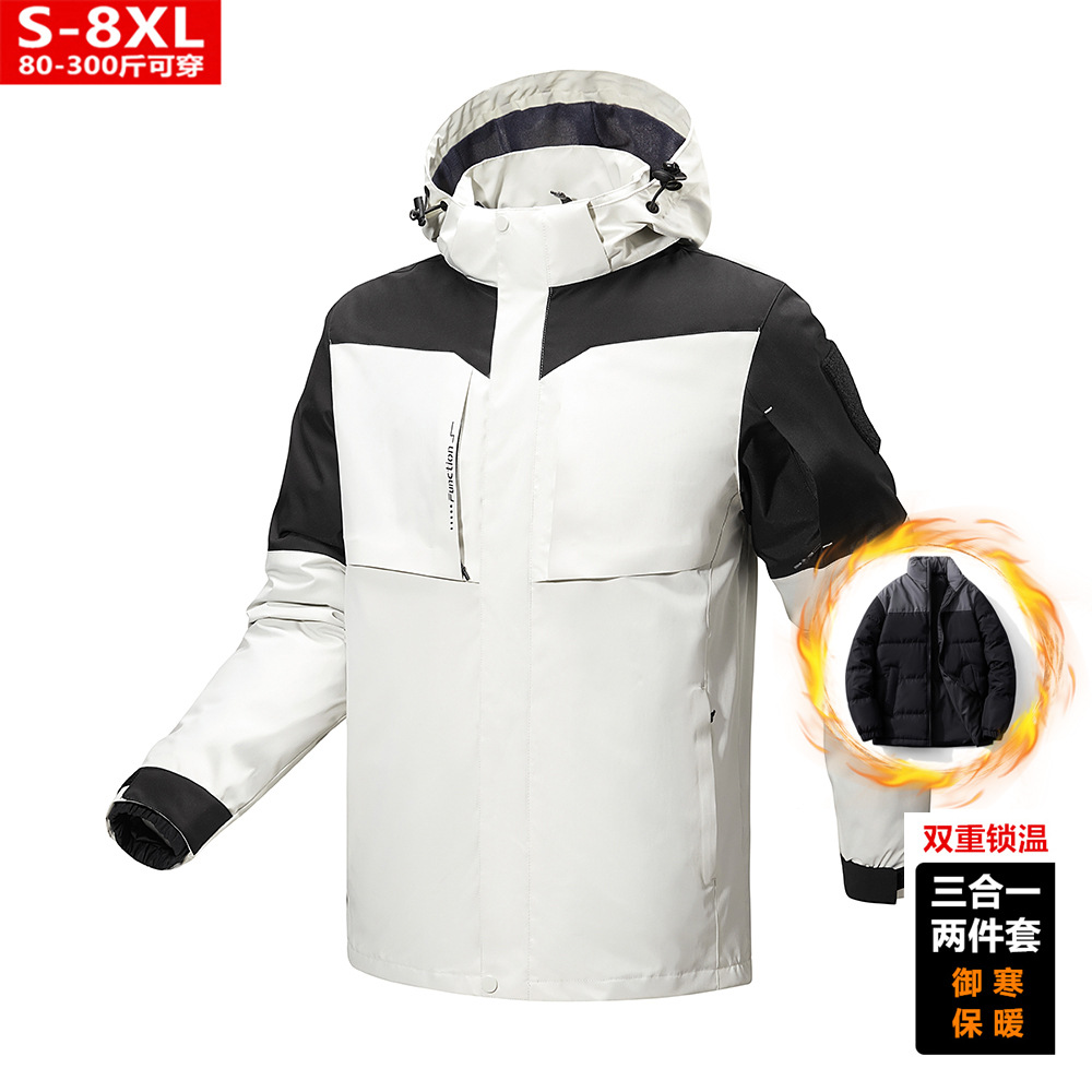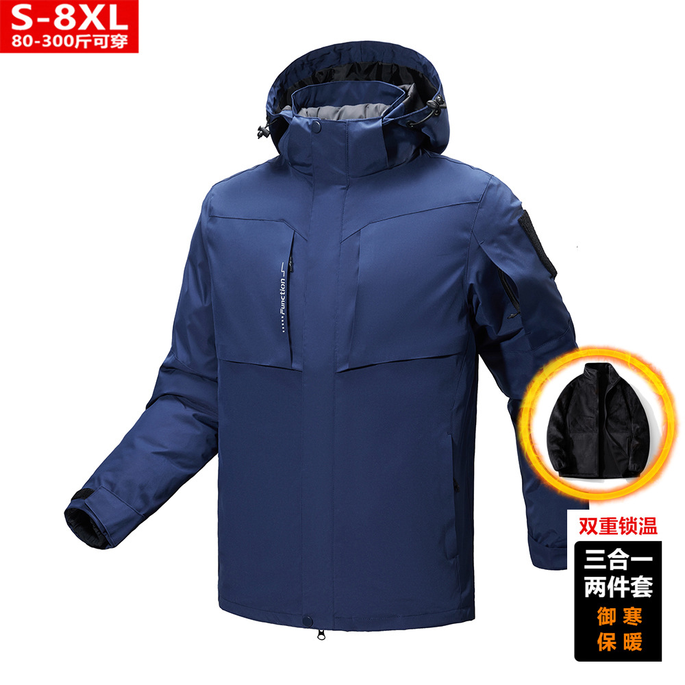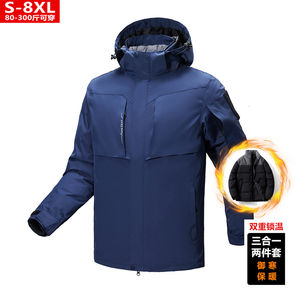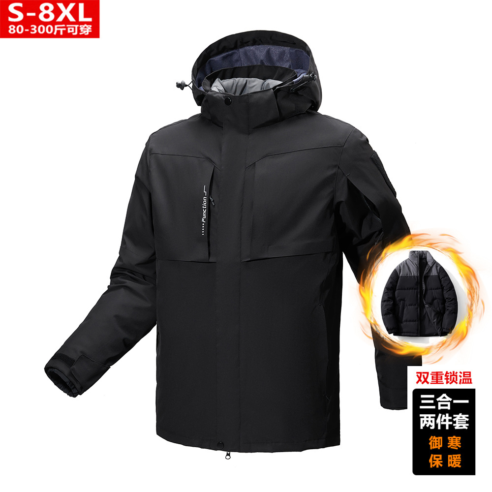 겨울 트렌디 한 품질의 남성 3 대 1 후드 재킷 통통한 남성 플러스 지방 플러스 사이즈 내한성 따뜻한 투피스 코트스토어 가기