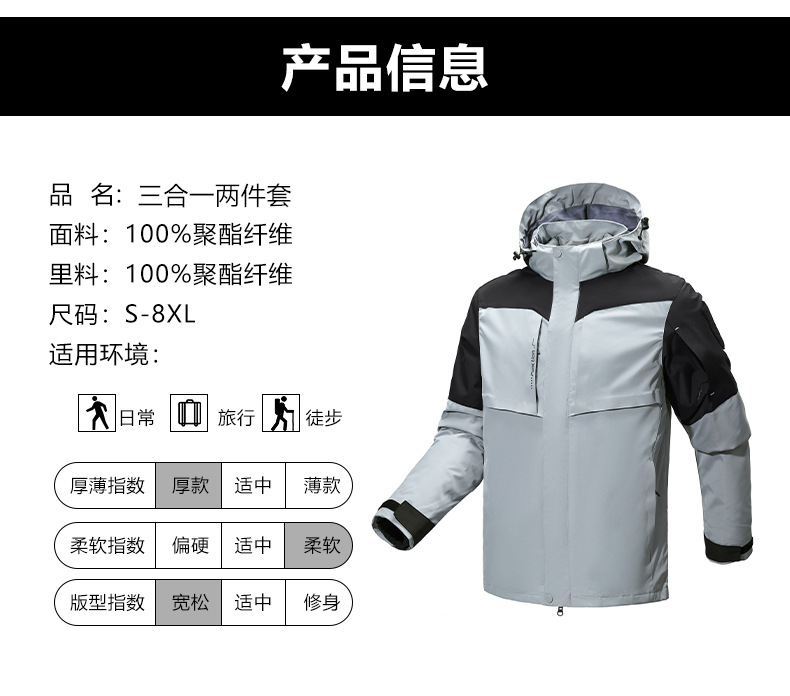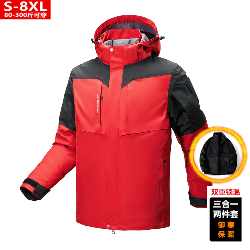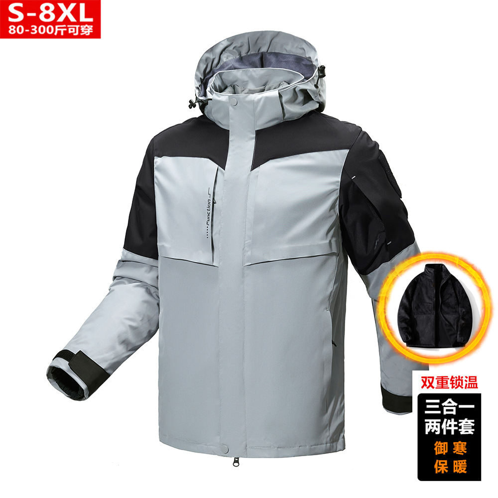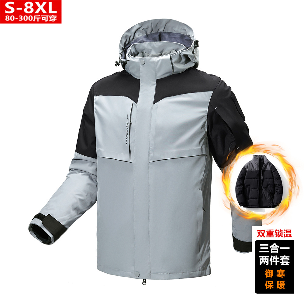 겨울 트렌디 한 품질의 남성 3 대 1 후드 재킷 통통한 남성 플러스 지방 플러스 사이즈 내한성 따뜻한 투피스 코트스토어 가기