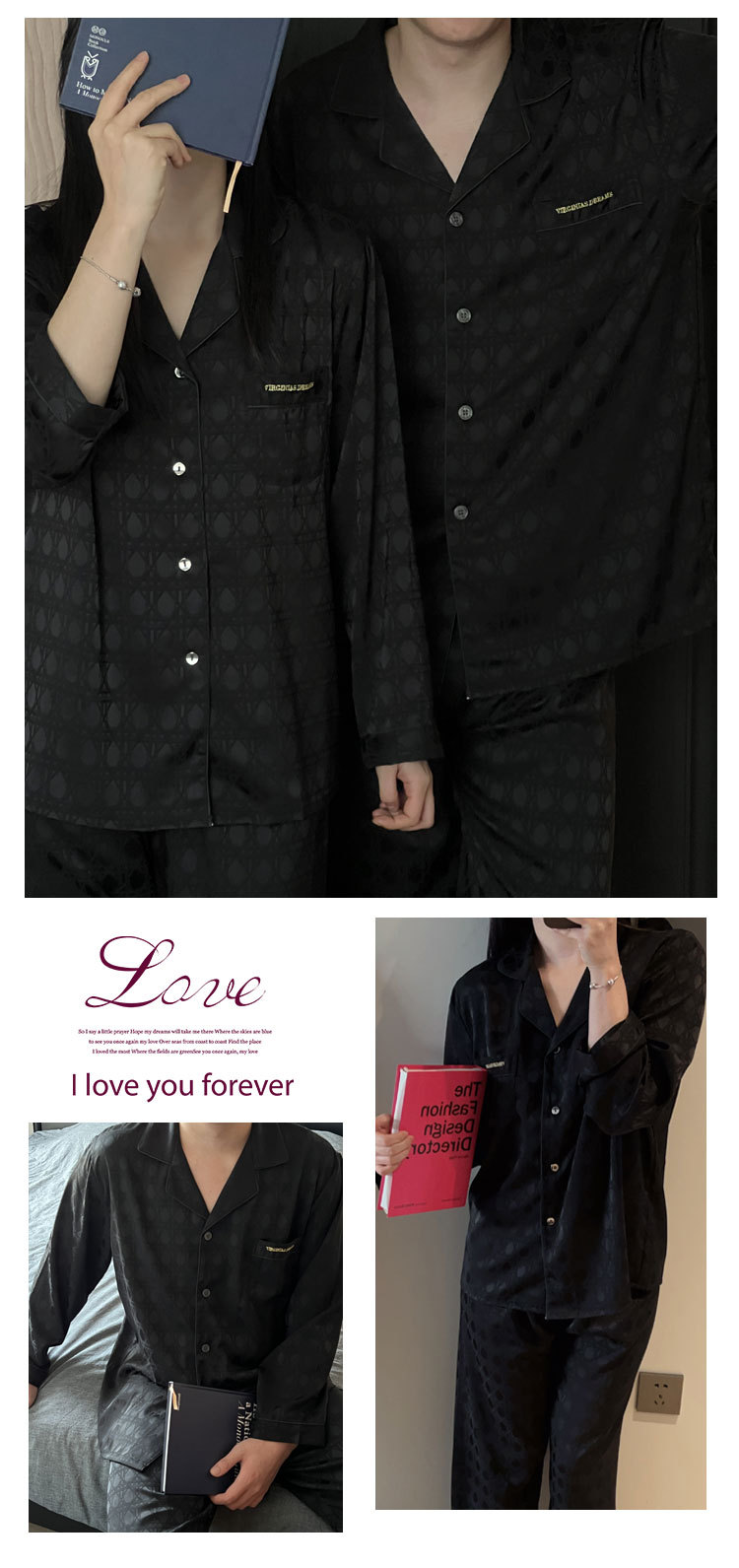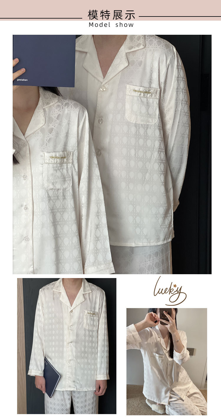2025 새 커플 아이스 실크 파자마 여성 하이 엔드 단순 카디건 남성 긴팔 아웃웨어 홈 의류