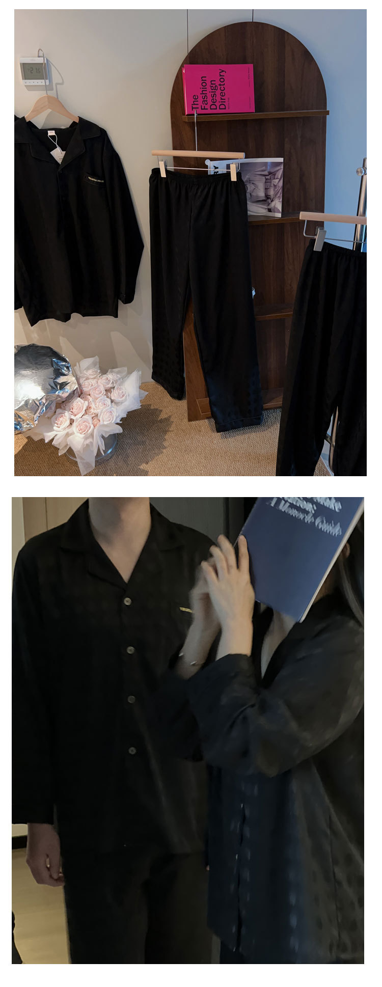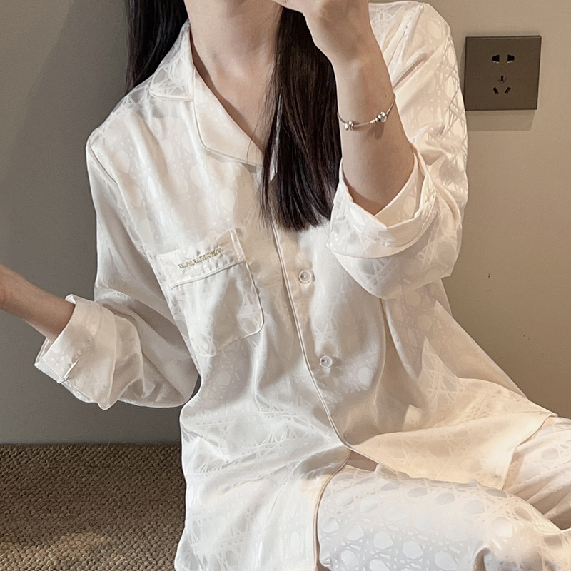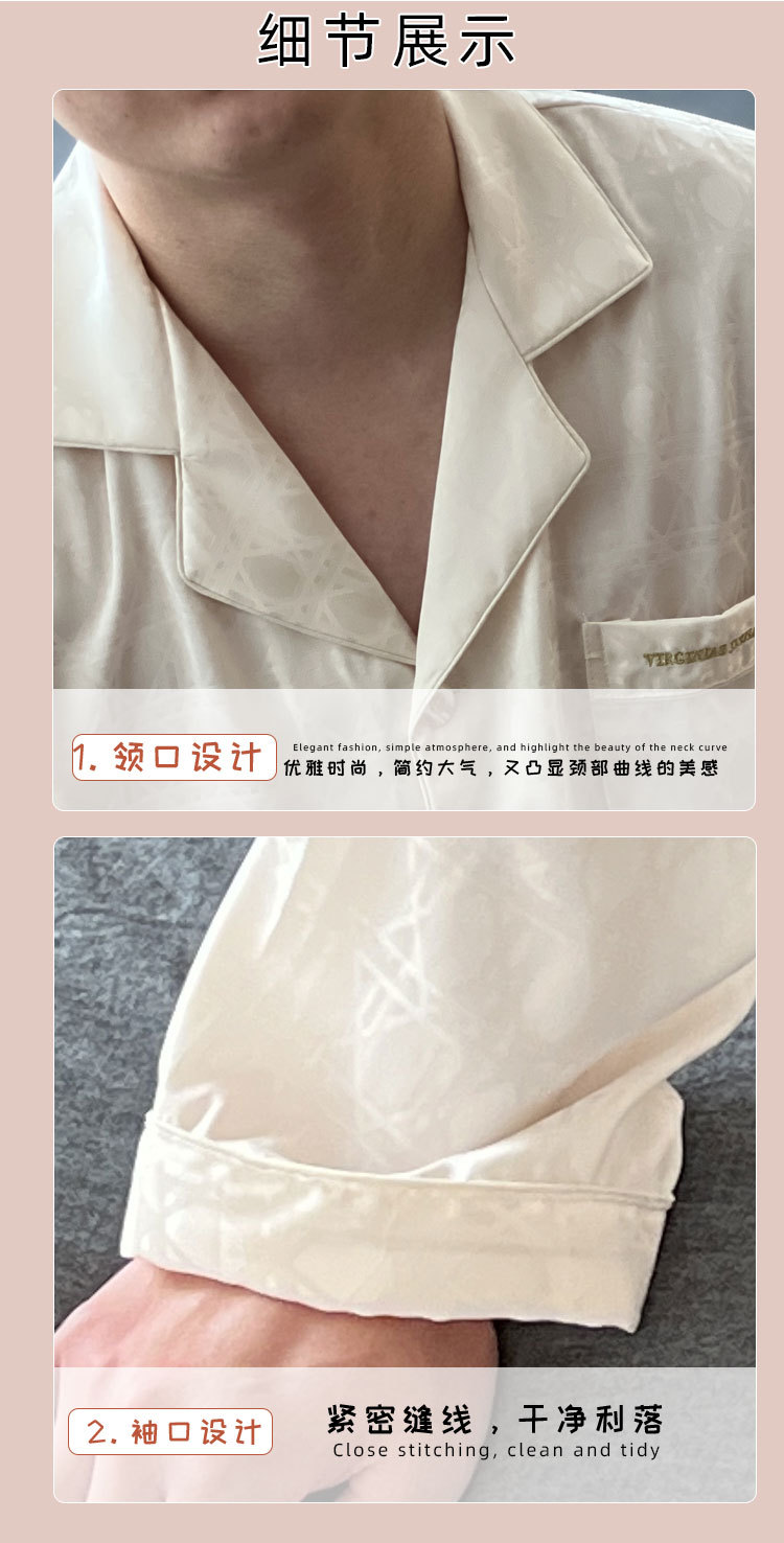 2025 새 커플 아이스 실크 파자마 여성 하이 엔드 단순 카디건 남성 긴팔 아웃웨어 홈 의류스토어 가기