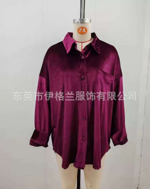 유럽과 미국의 새로운 벨벳 셔츠 2025 독립형 긴팔 싱글 브레스트 다용도 탑 루즈한 바닥 셔츠 여성용스토어 가기