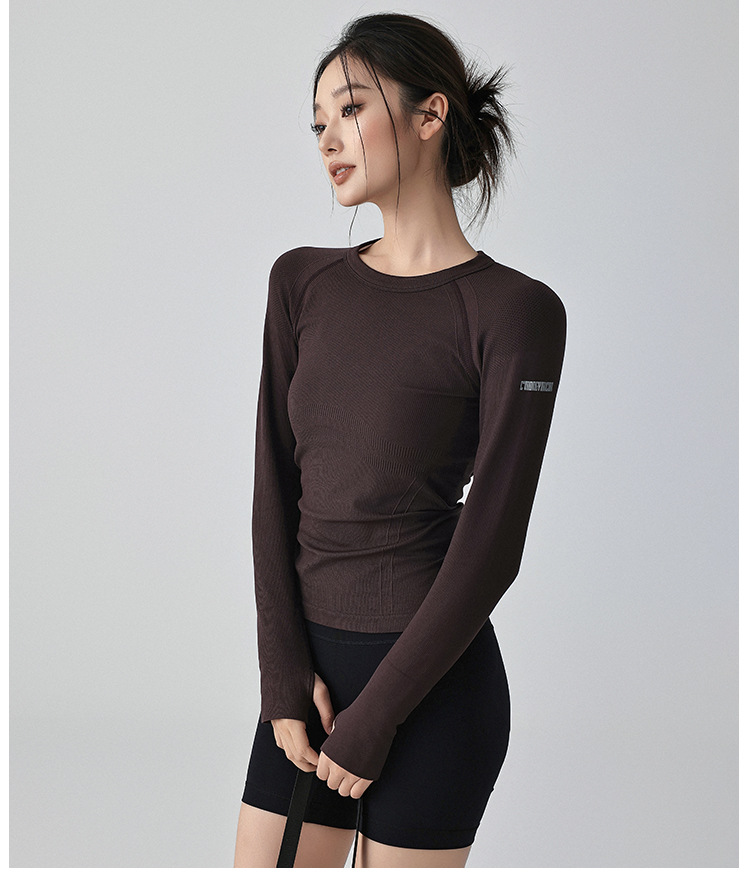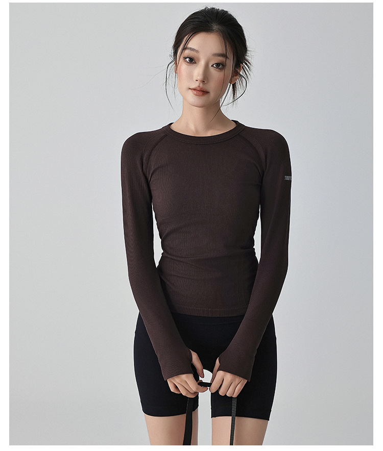 가을과 겨울 새로운 요가 옷 긴 소매 슬리밍 필라테스 달리기 스포츠 피트니스 꽉 단색 훈련 통기성 탑