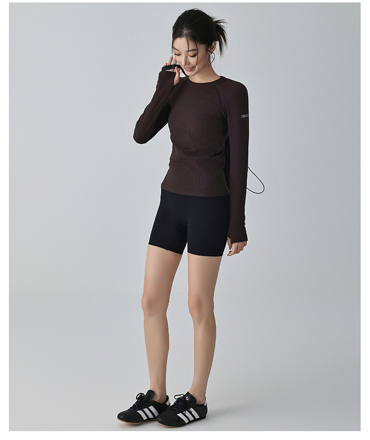 가을과 겨울 새로운 요가 옷 긴 소매 슬리밍 필라테스 달리기 스포츠 피트니스 꽉 단색 훈련 통기성 탑스토어 가기
