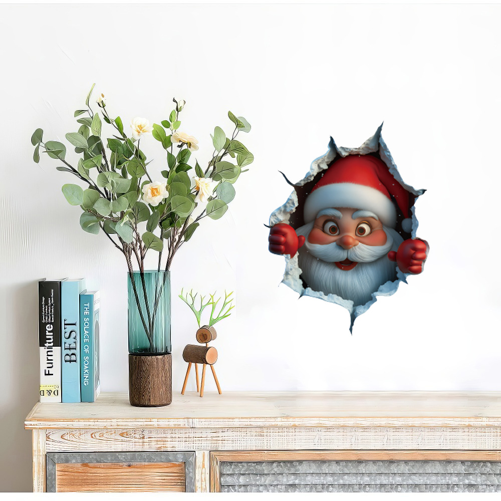 대외 무역 국경 크리스마스 창조적 인 깨진 벽 만화 산타 클로스 거실 방 배경 벽 장식 벽 스티커스토어 가기