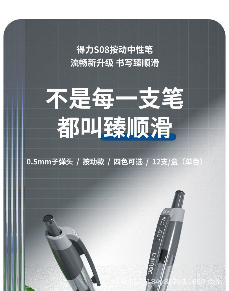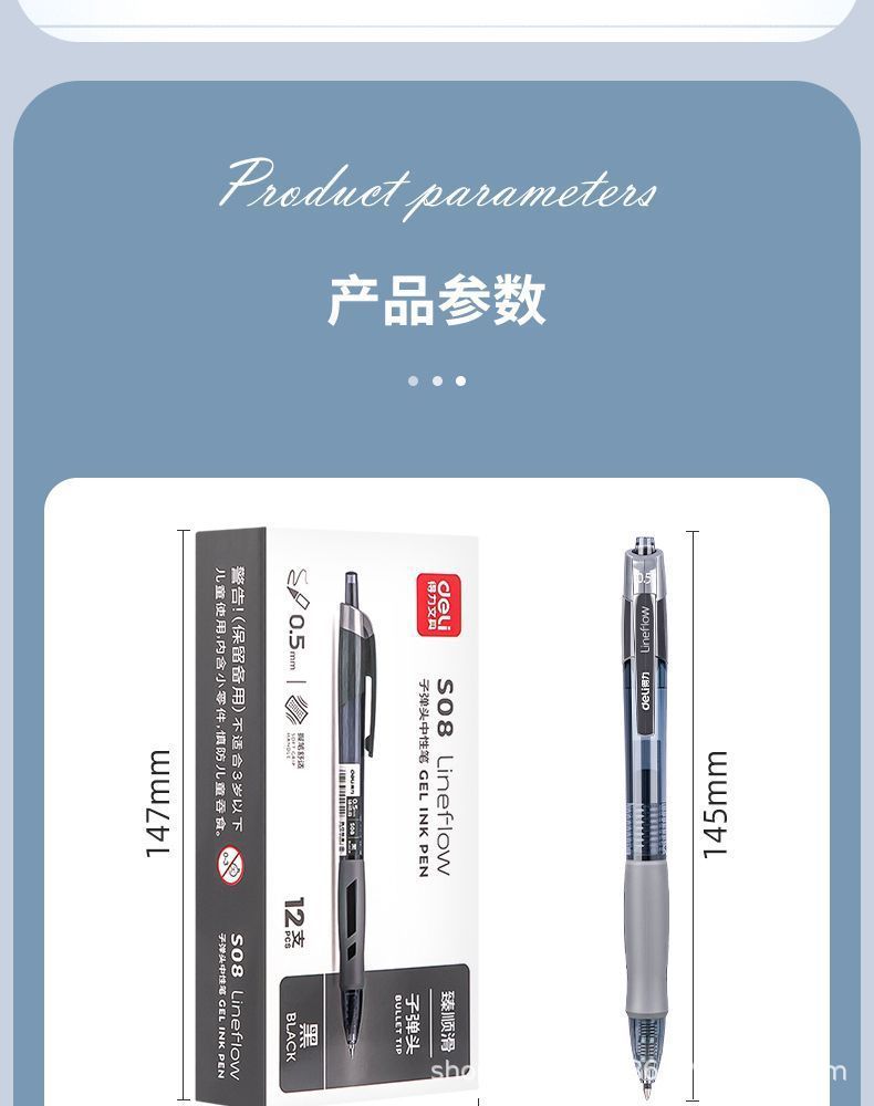 델리 s08 프레스 젤 펜 0.5 학생 총알 브러쉬 질문 펜 프레스 펜 검정 시험 펜 속건 펜