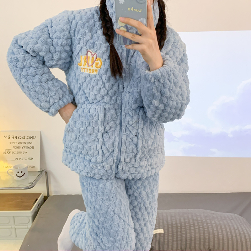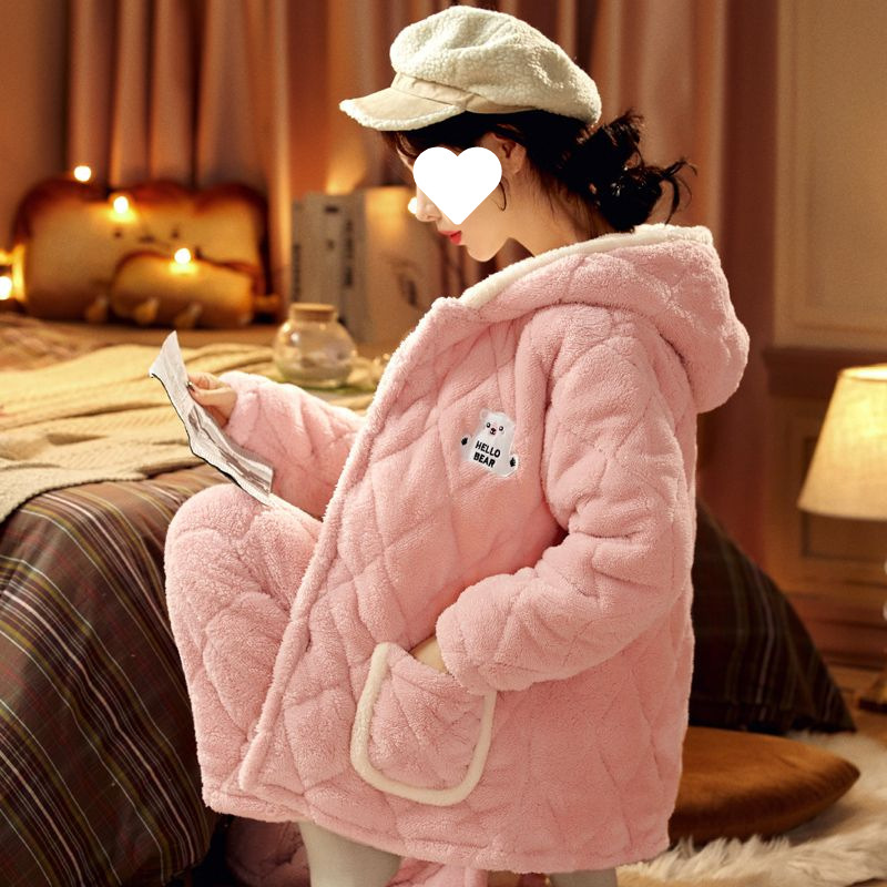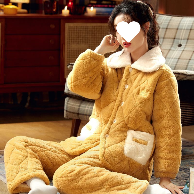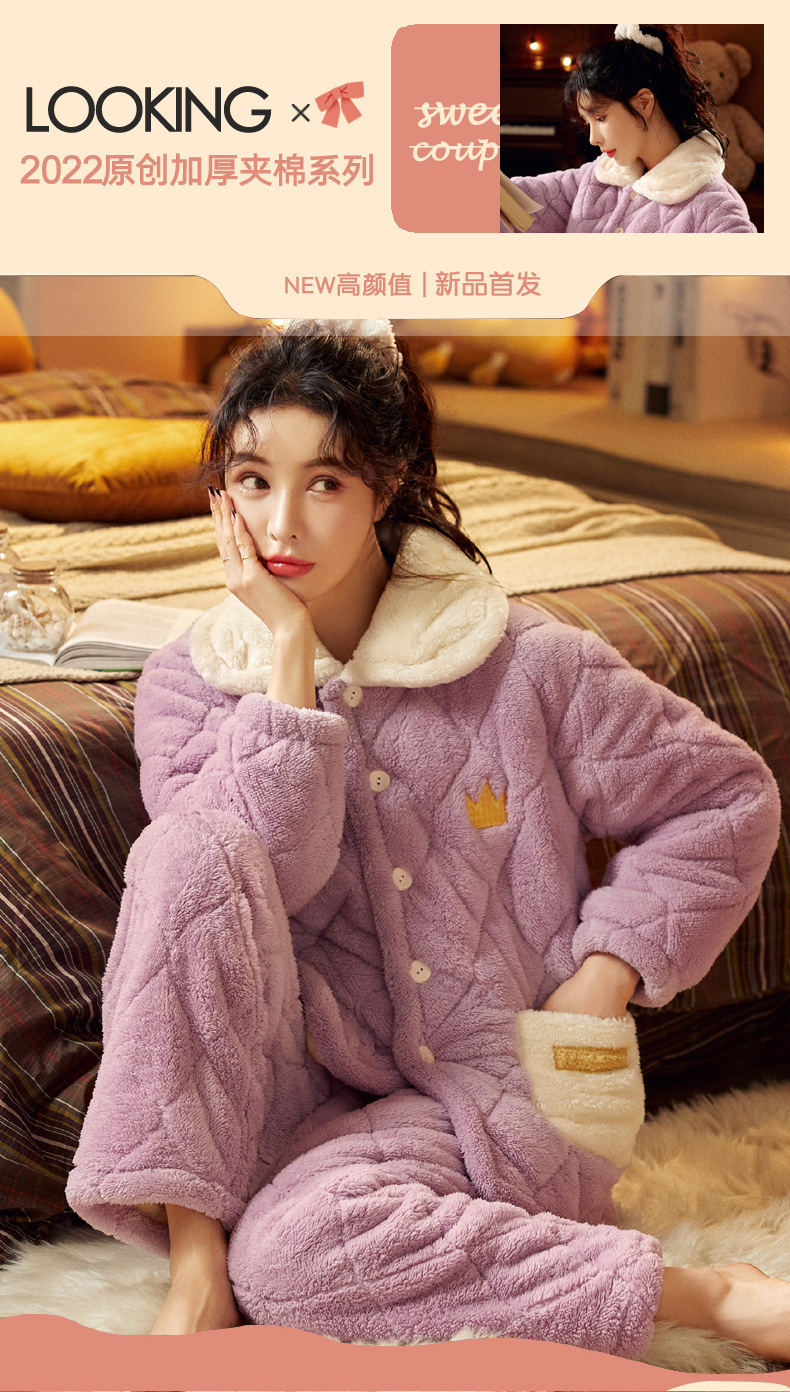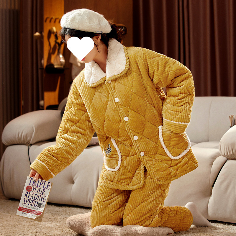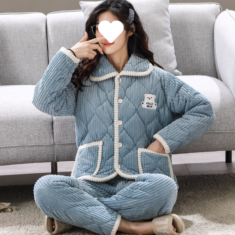 파자마 여성의 겨울 플란넬 3 층 면화 패딩 재킷 두꺼운 2023 새로운 스타일 홈 옷스토어 가기