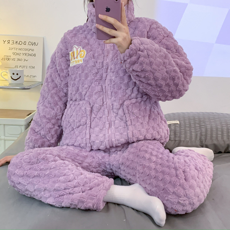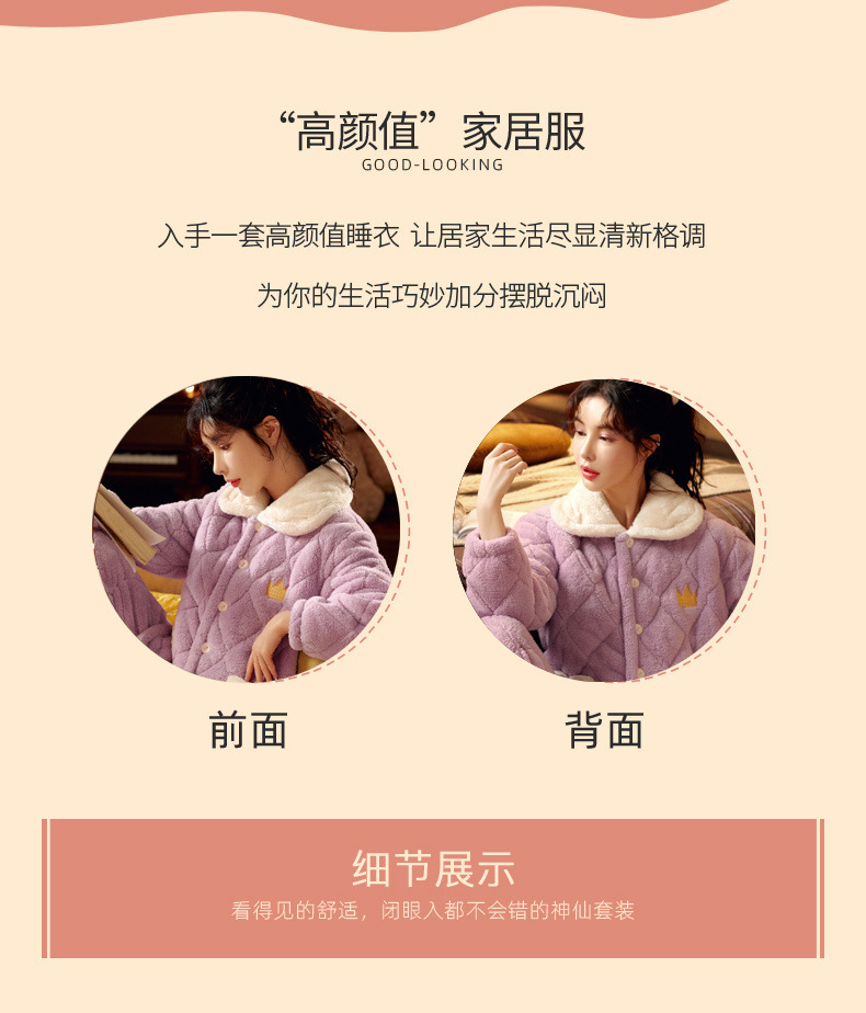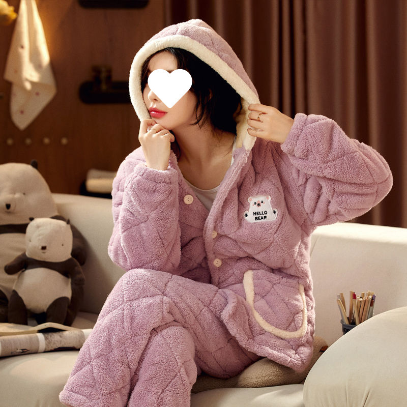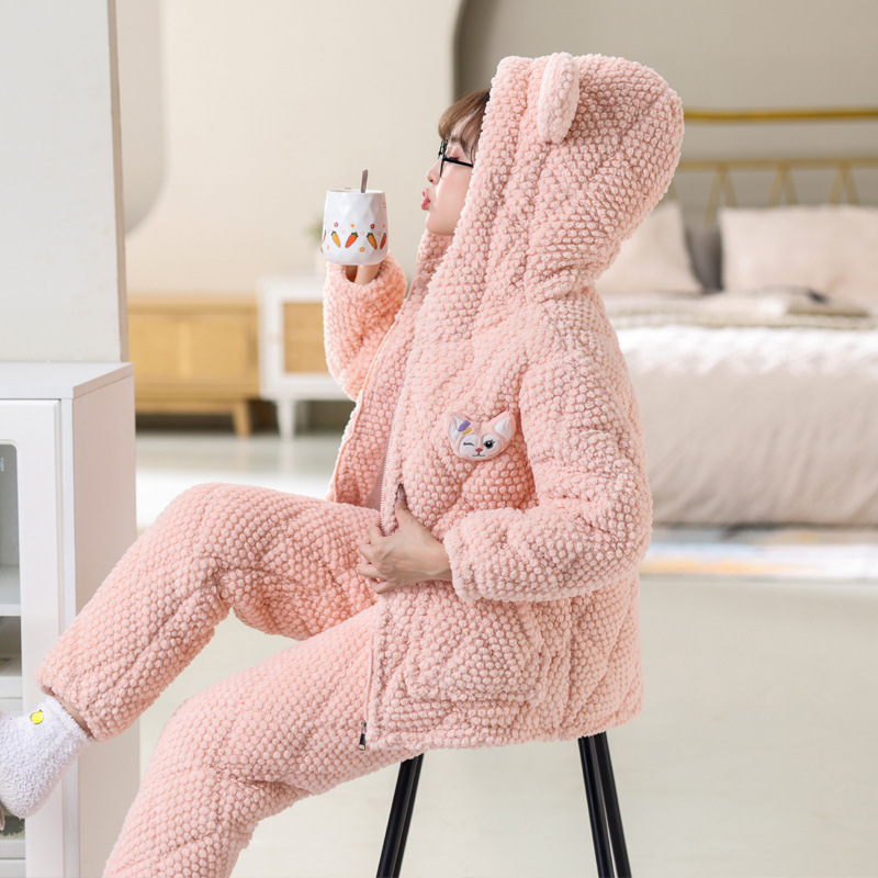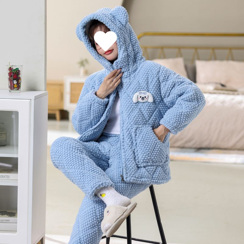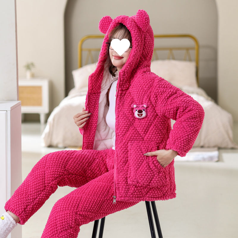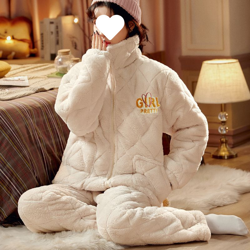 파자마 여성의 겨울 플란넬 3 층 면화 패딩 재킷 두꺼운 2023 새로운 스타일 홈 옷스토어 가기
