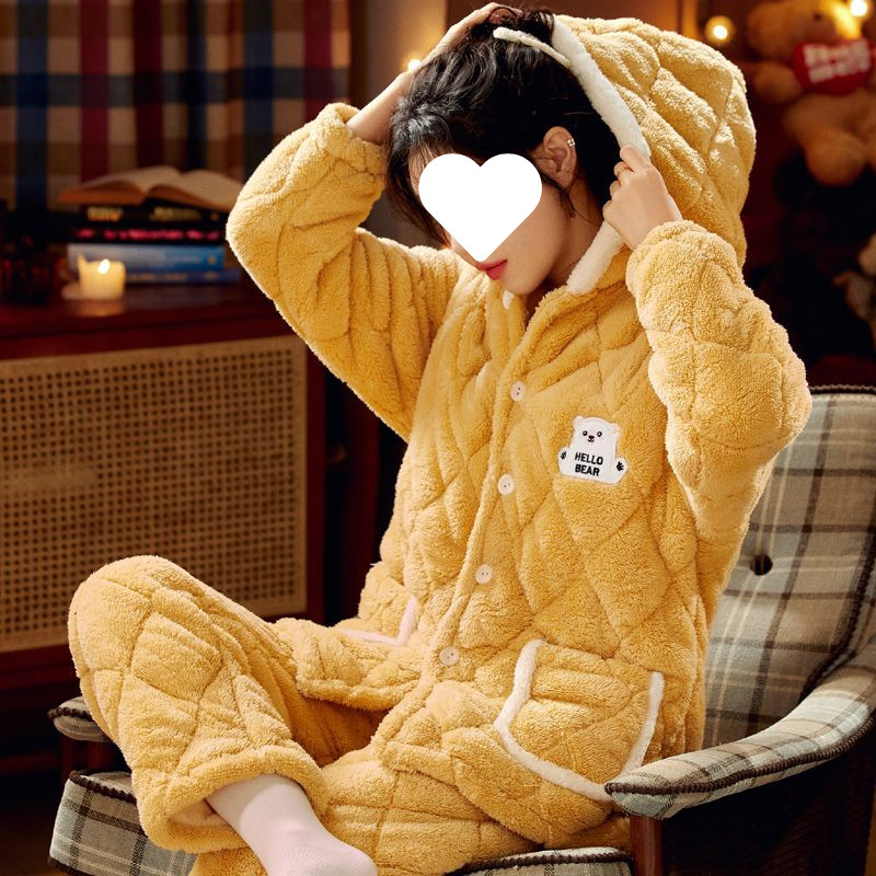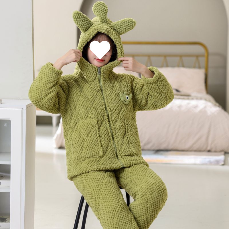 파자마 여성의 겨울 플란넬 3 층 면화 패딩 재킷 두꺼운 2023 새로운 스타일 홈 옷