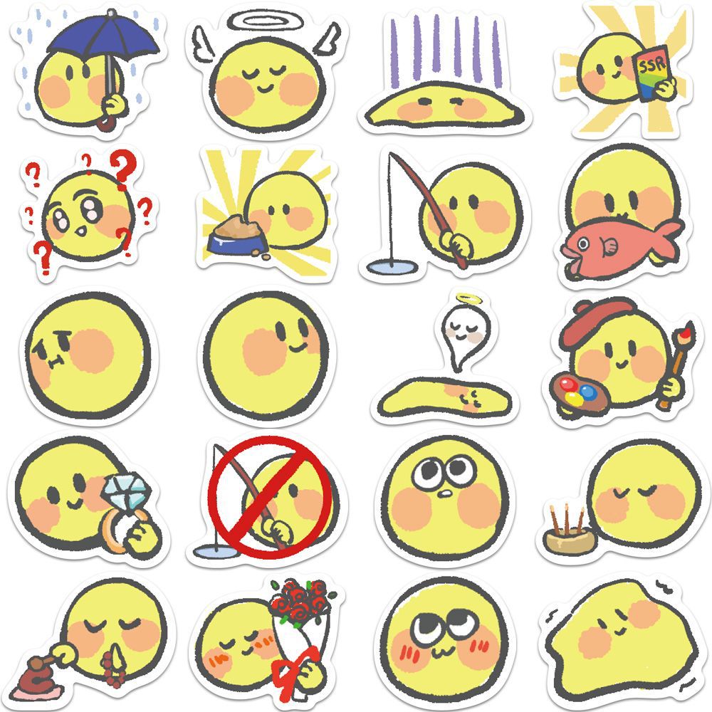 80 만화 노란색 얼굴 표현 가방 스티커 귀여운 Q 버전 EMOJI 손으로 그린 표현 손 계정 스티커 손 계정 스티커