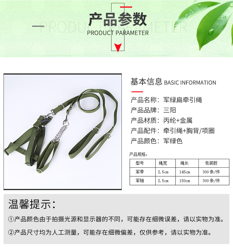 애완 동물 견인 로프 플랫 로프 단일 견인 벨트 가슴 등 견인 다기능 견인