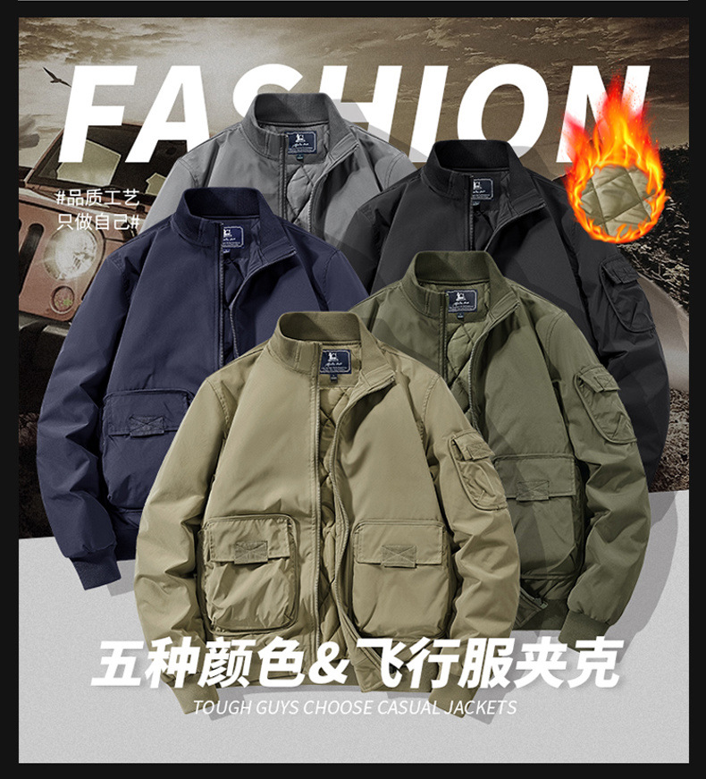 국경 간 특별 새 가을과 겨울 남자 툴링 두꺼운 멀티 포켓 폭격기 재킷 올 매치 레트로 아메리칸 야구