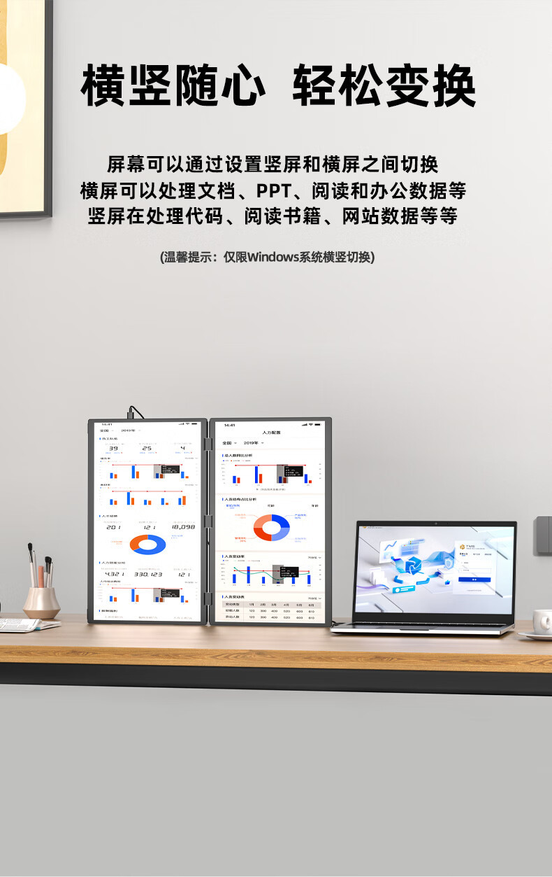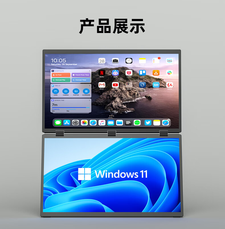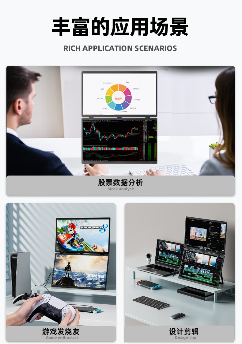 18.5 인치 접이식 듀얼 스크린 휴대용 디스플레이 노트북 오피스 스톡 게임 외부 확장 화면스토어 가기