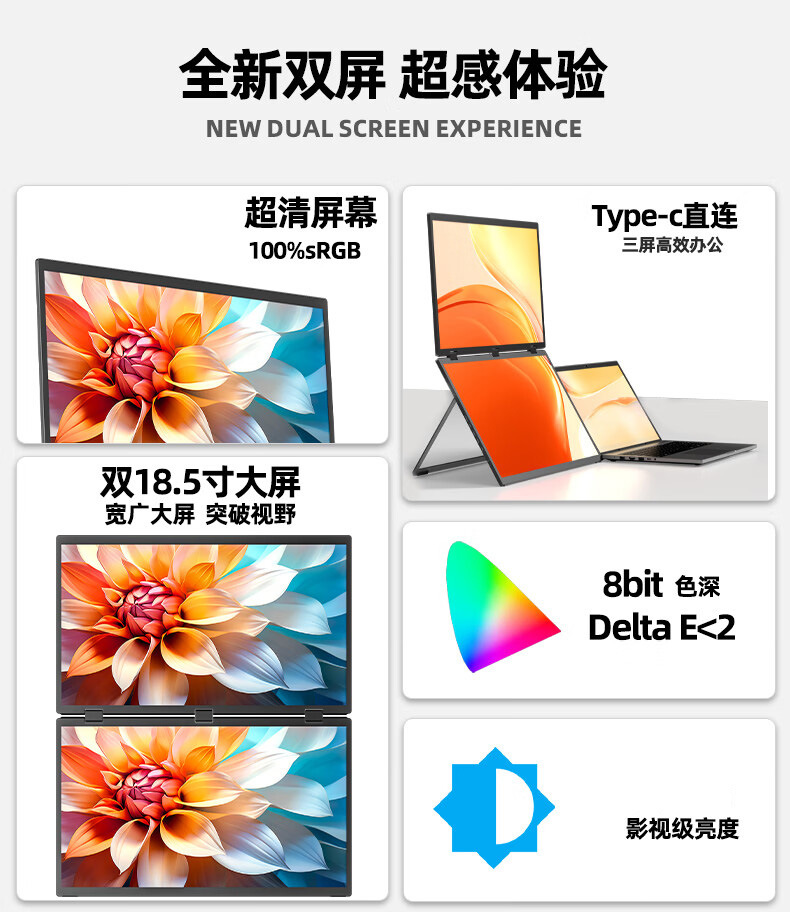 18.5 인치 접이식 듀얼 스크린 휴대용 디스플레이 노트북 오피스 스톡 게임 외부 확장 화면