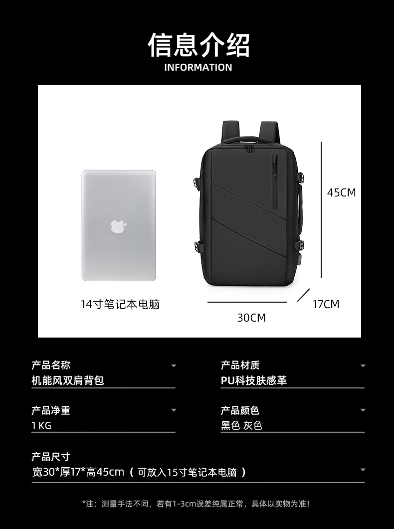 배낭 남성 비즈니스 배낭 대용량 여행 수하물 가방 16.1 인치 노트북 가방