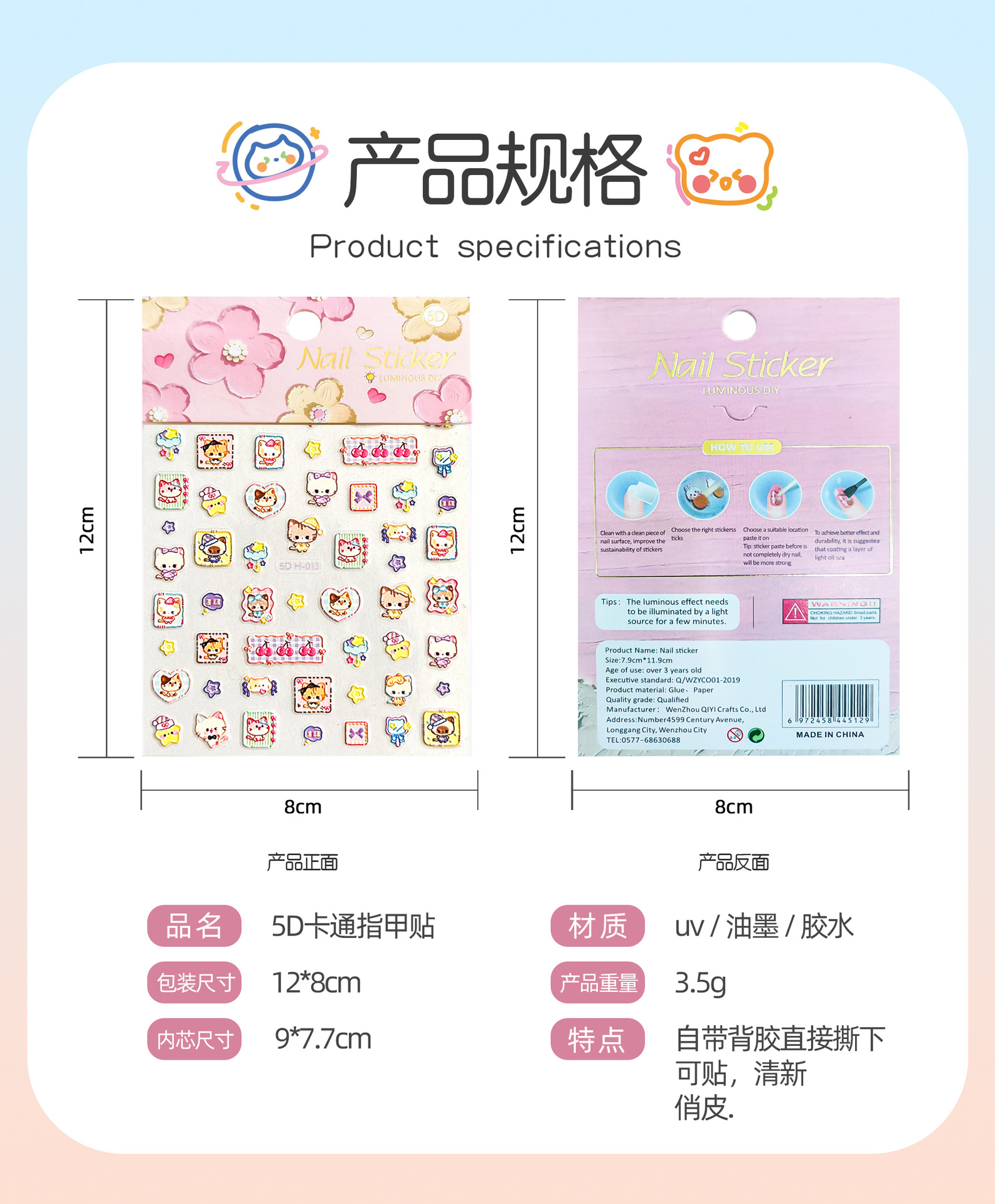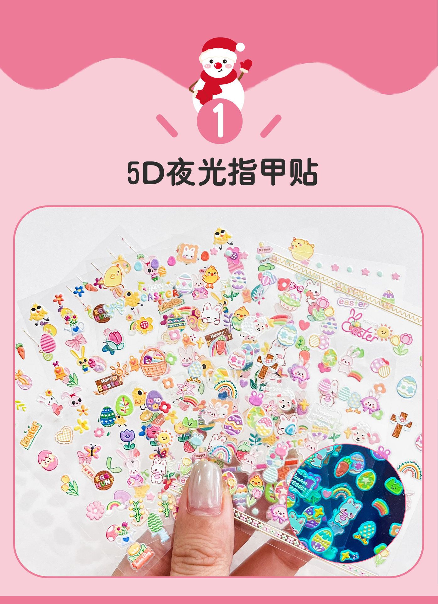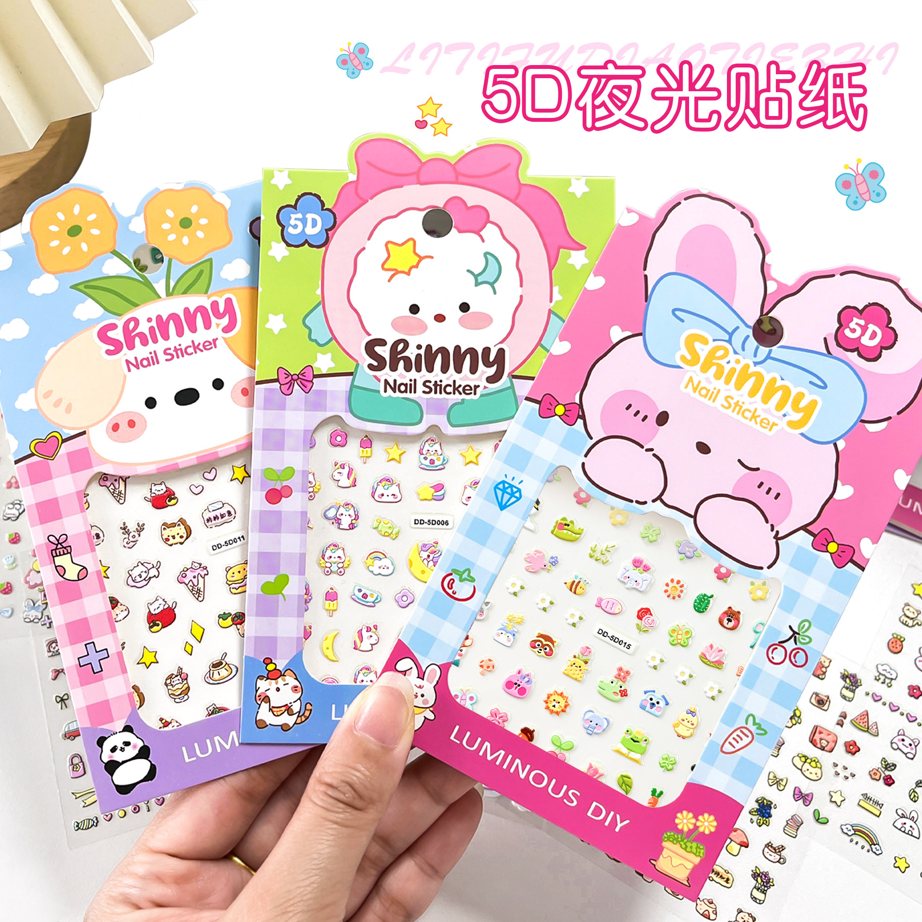 두 번째 샷! 만화 몬스터 5D 빛나는 네일 스티커 스테레오 릴리프 귀여운 일본 꽃 어린이 네일 스티커스토어 가기