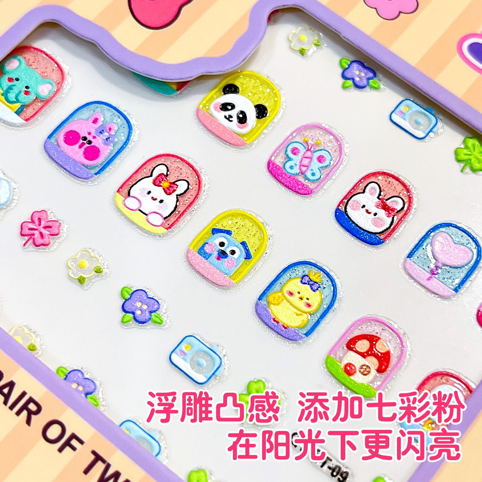 두 번째 샷! 만화 몬스터 5D 빛나는 네일 스티커 스테레오 릴리프 귀여운 일본 꽃 어린이 네일 스티커