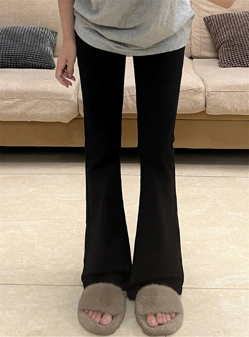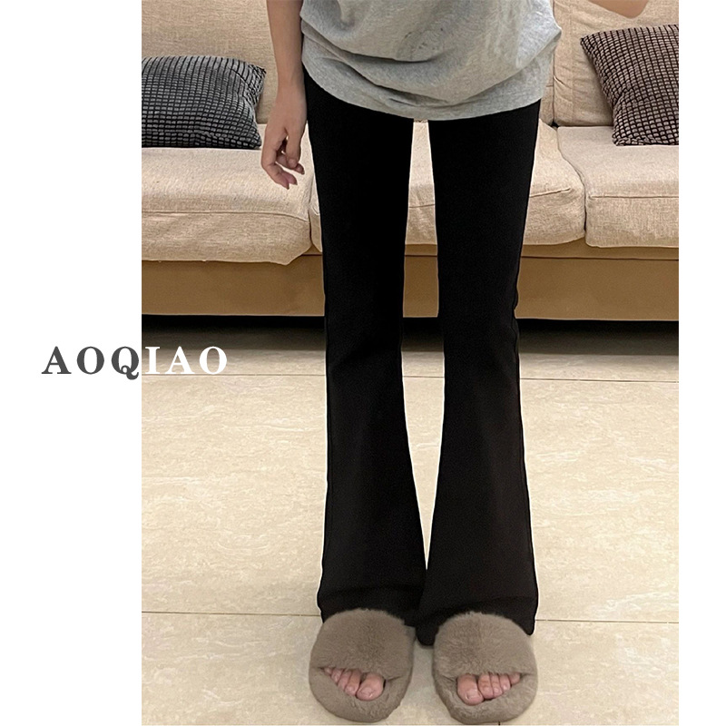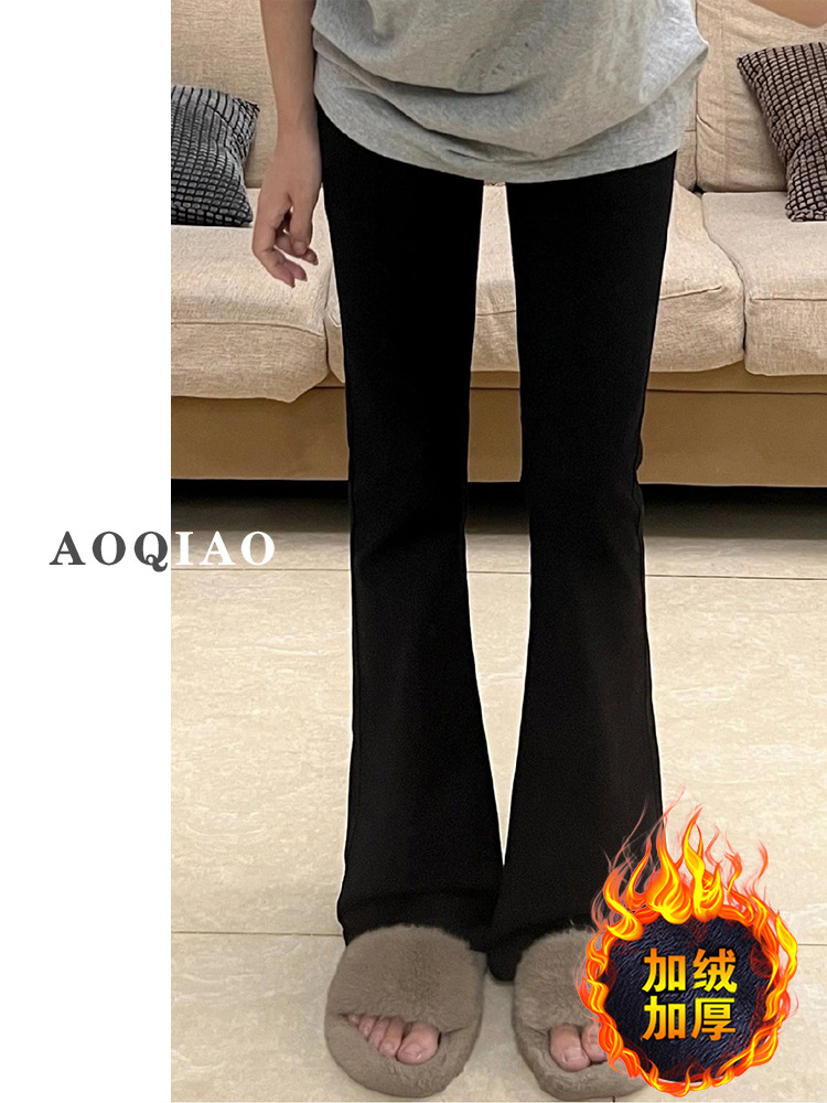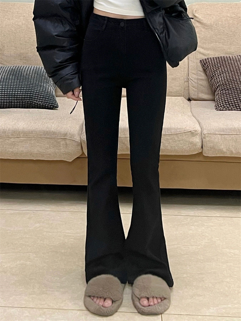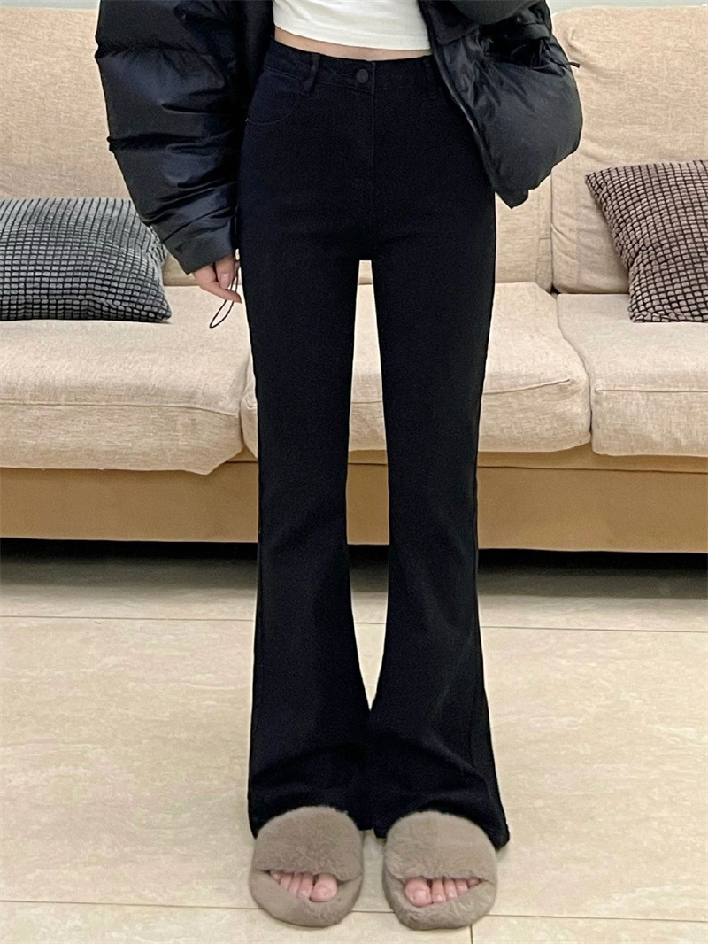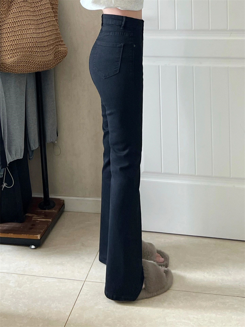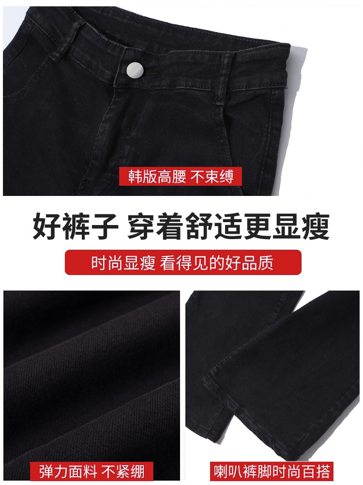 검은 마이크로 플레어 청바지 여성의 2024 년 가을 및 겨울 새로운 배 모양의 높은 허리 탄성 슬리밍 스트레이트 말굽 바지스토어 가기