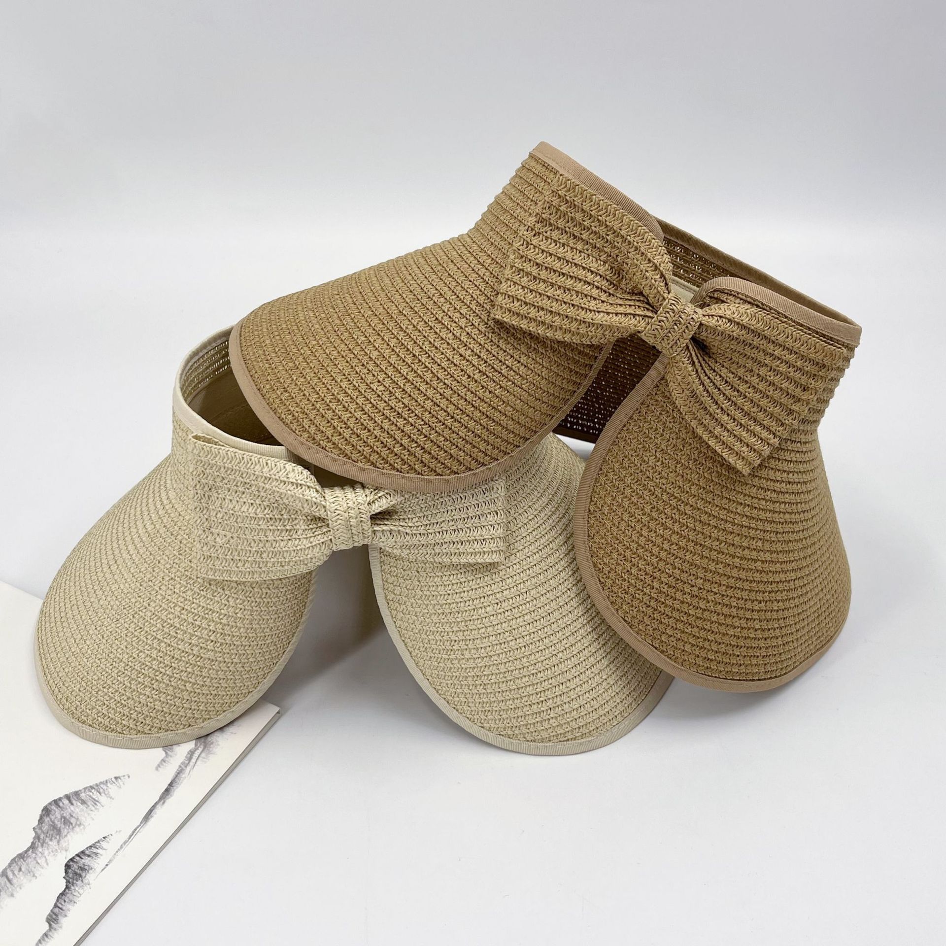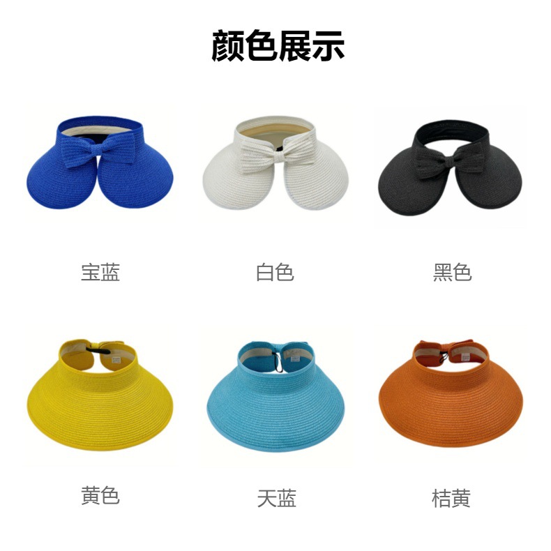 국경 간 뜨거운 판매 빈 상단 밀짚 모자 접이식 야외 휴대용 활 넓은 챙 태양 모자 여성 태양 보호 해변 모자스토어 가기