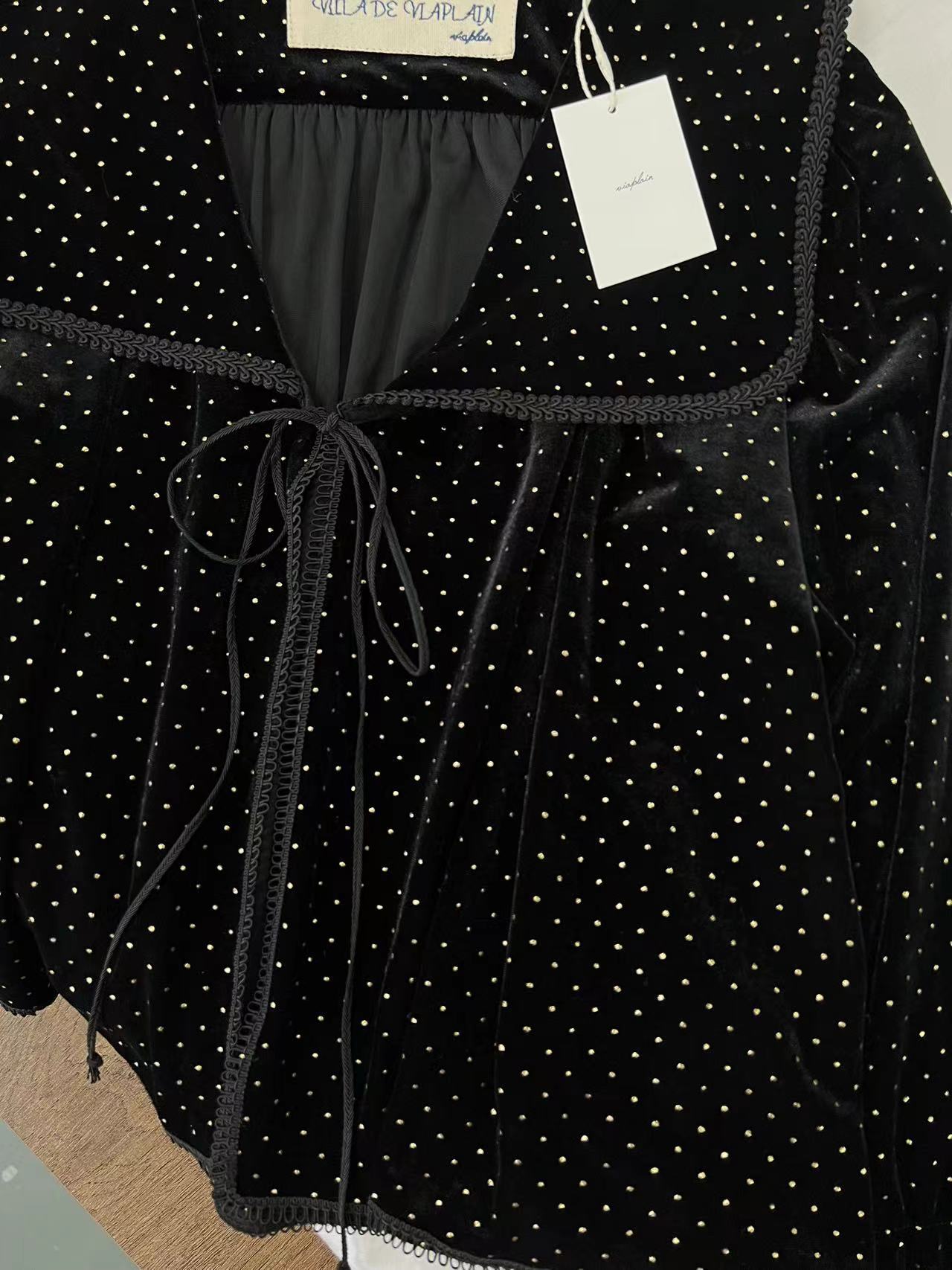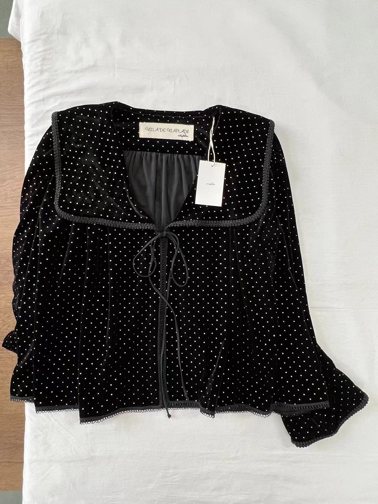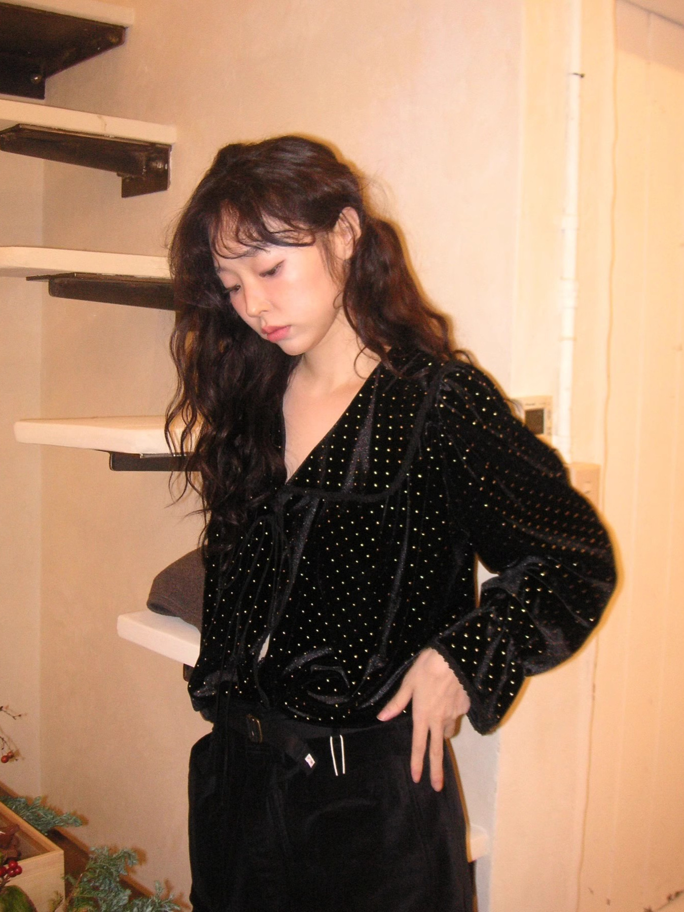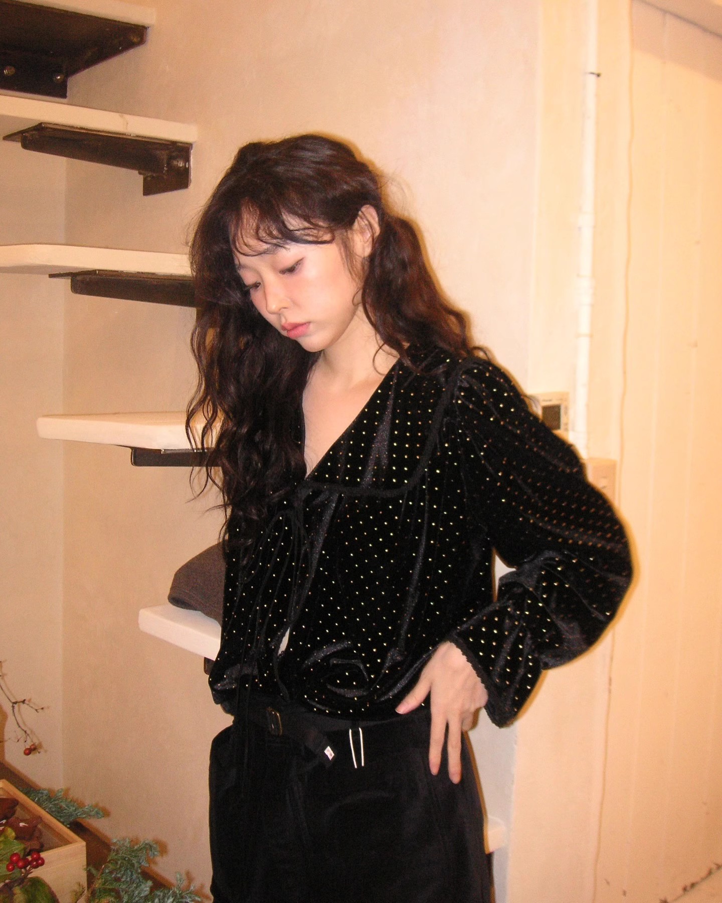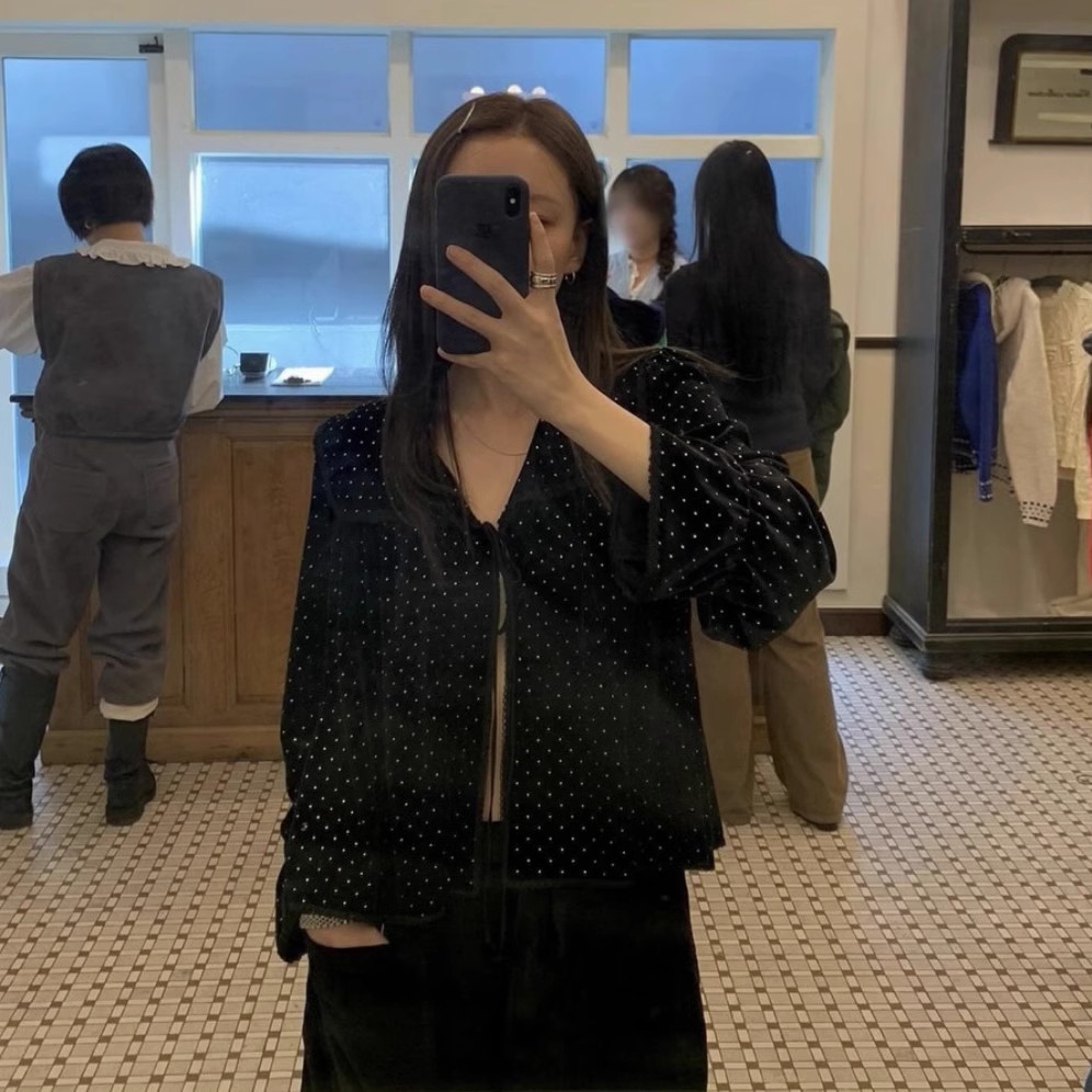 韩国 vi*plain 新款 STELLA 波点天鹅绒系带衬衫