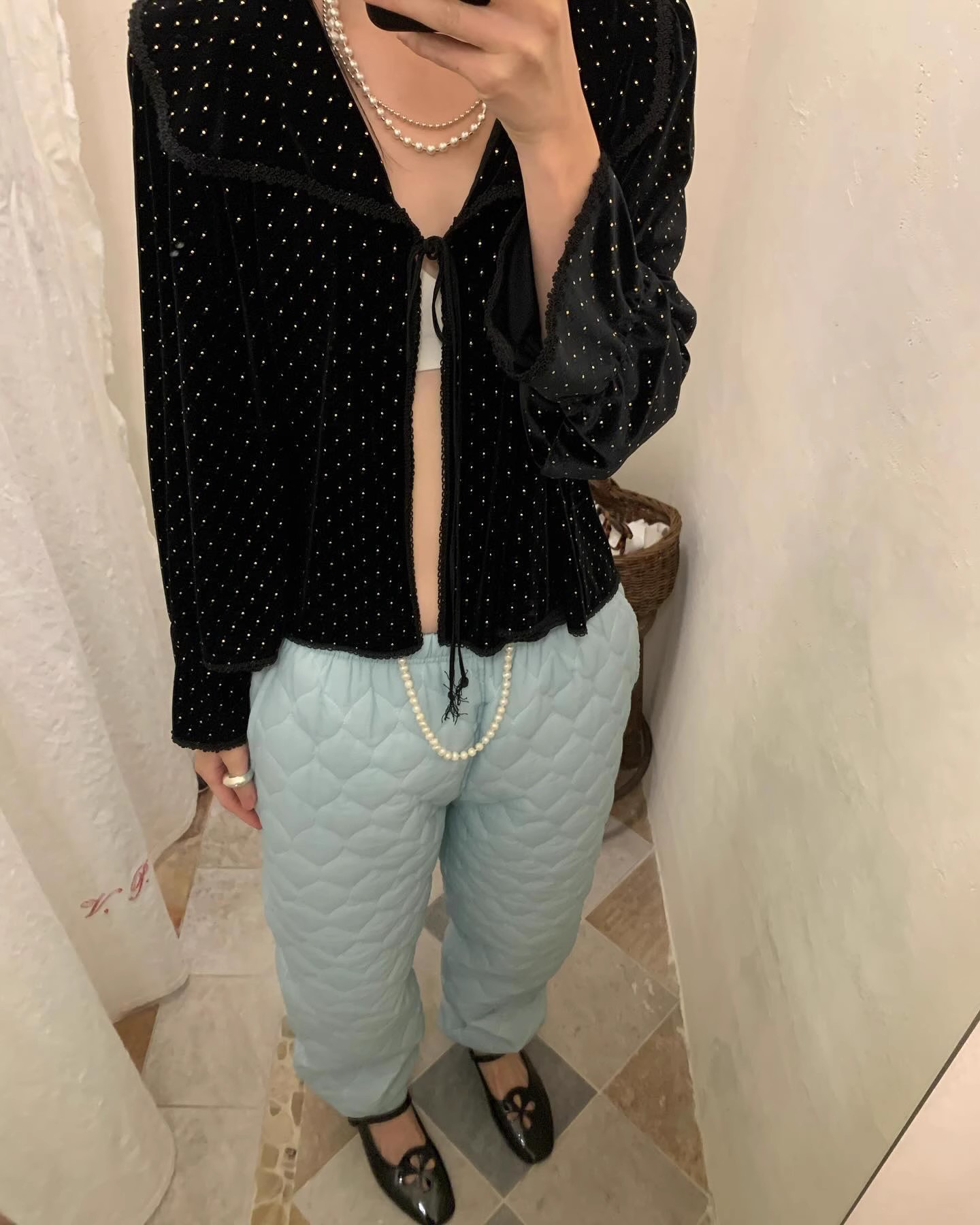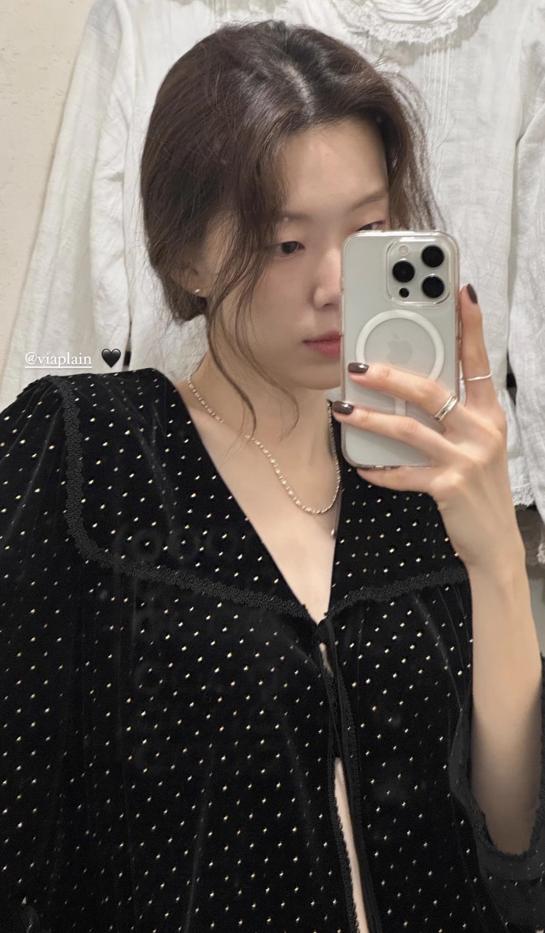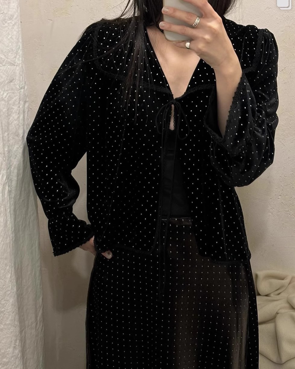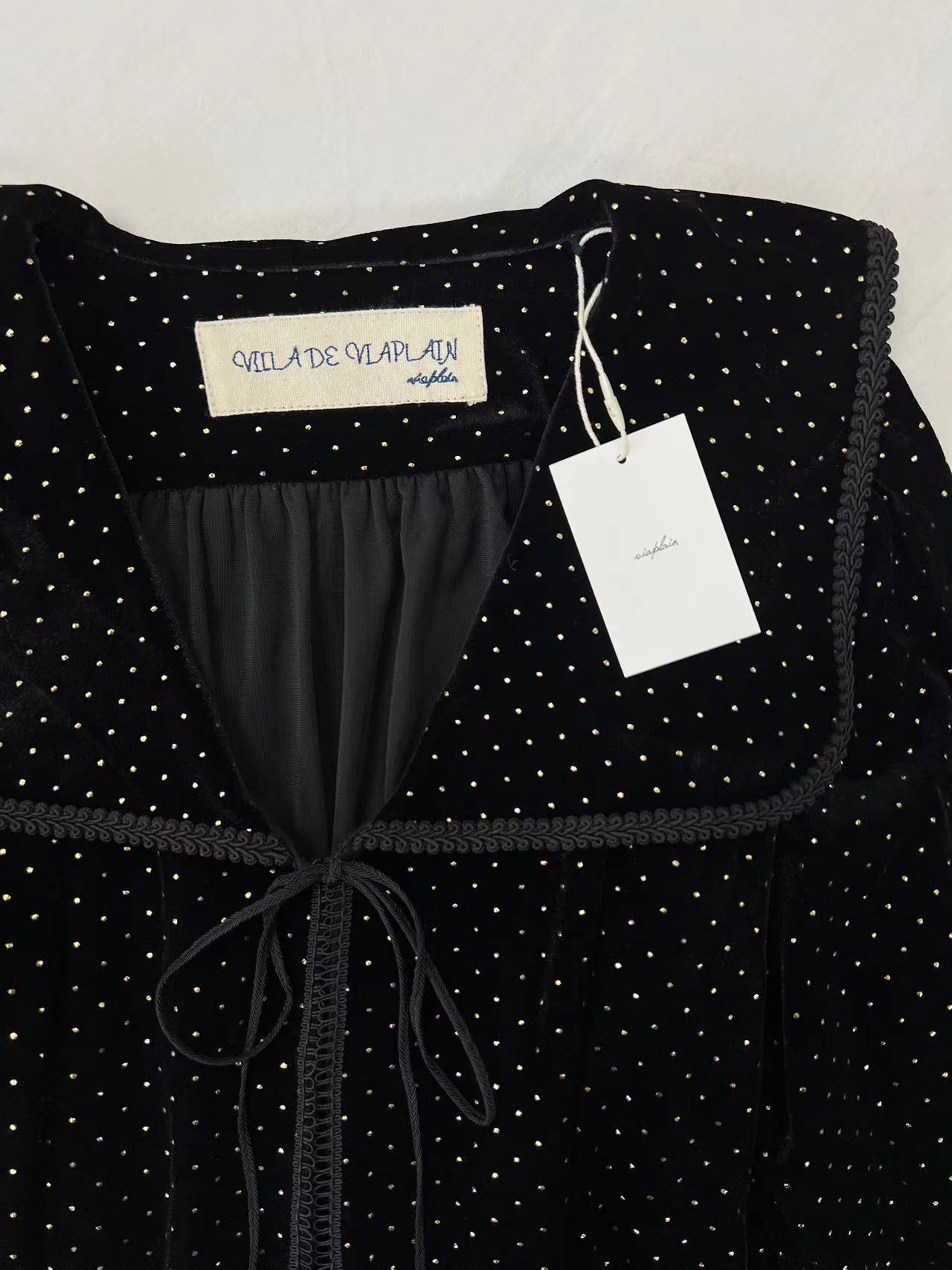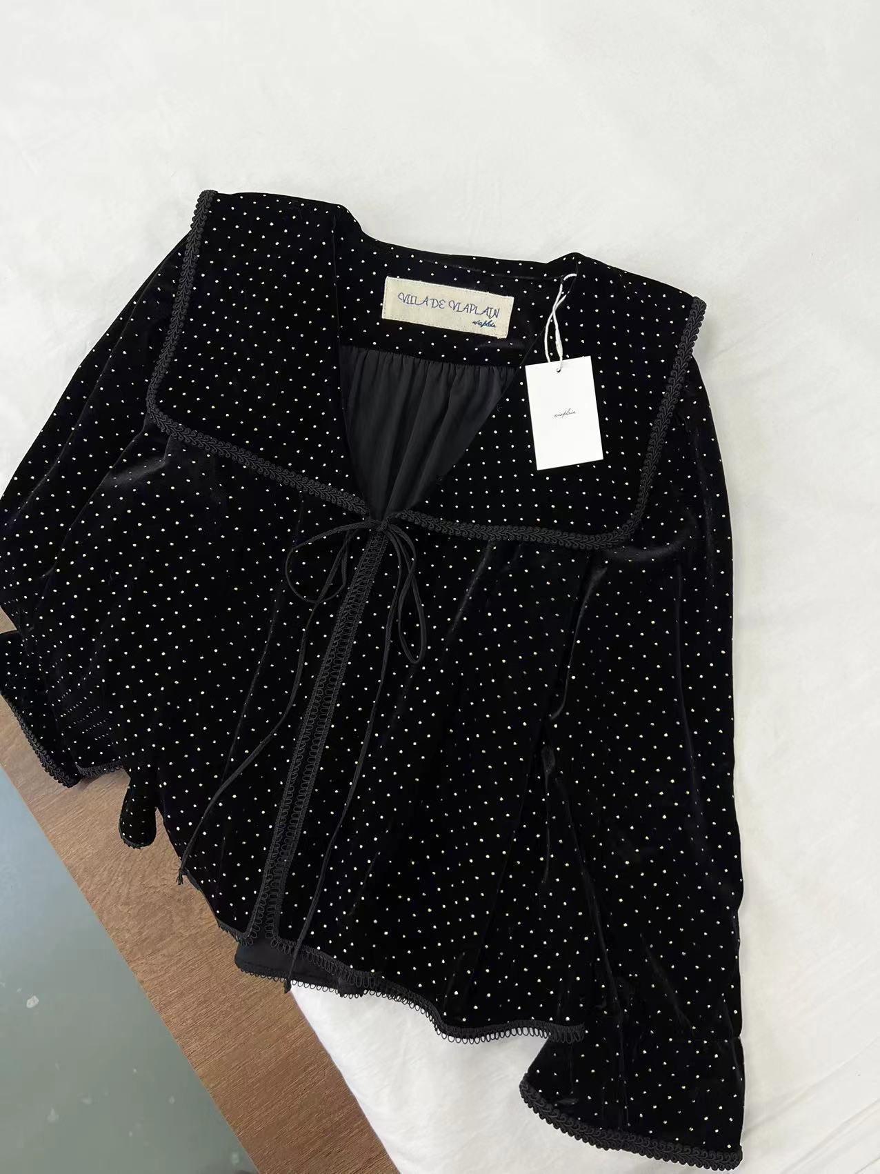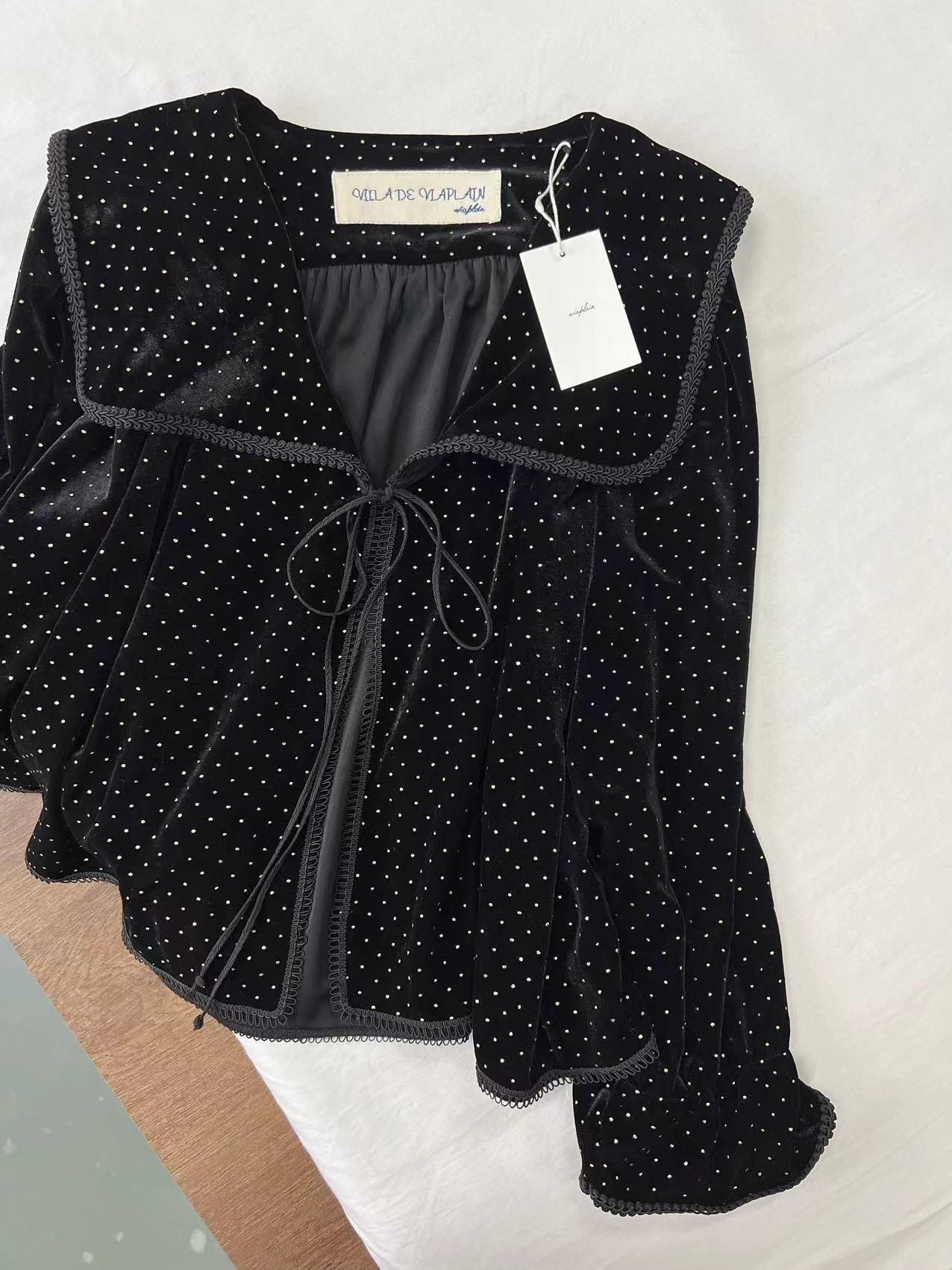 韩国 vi*plain 新款 STELLA 波点天鹅绒系带衬衫