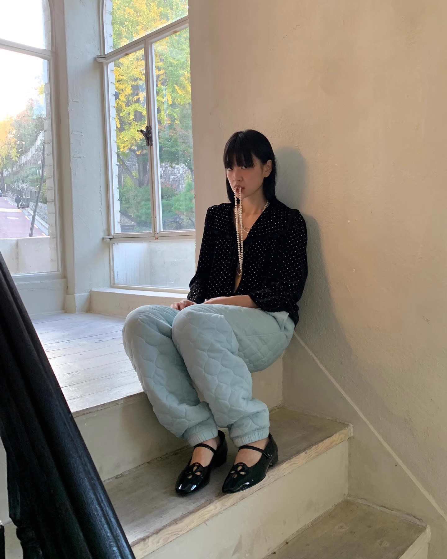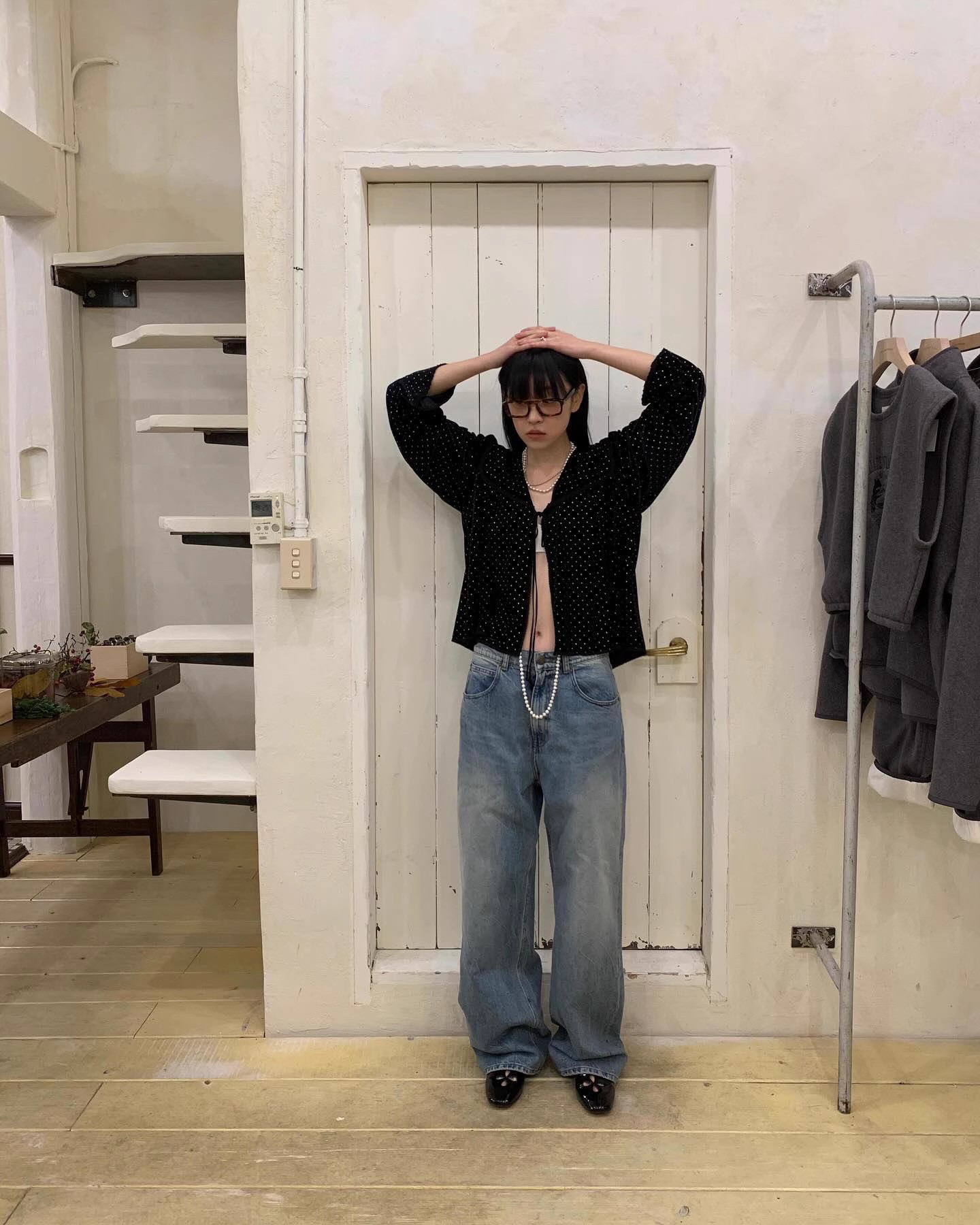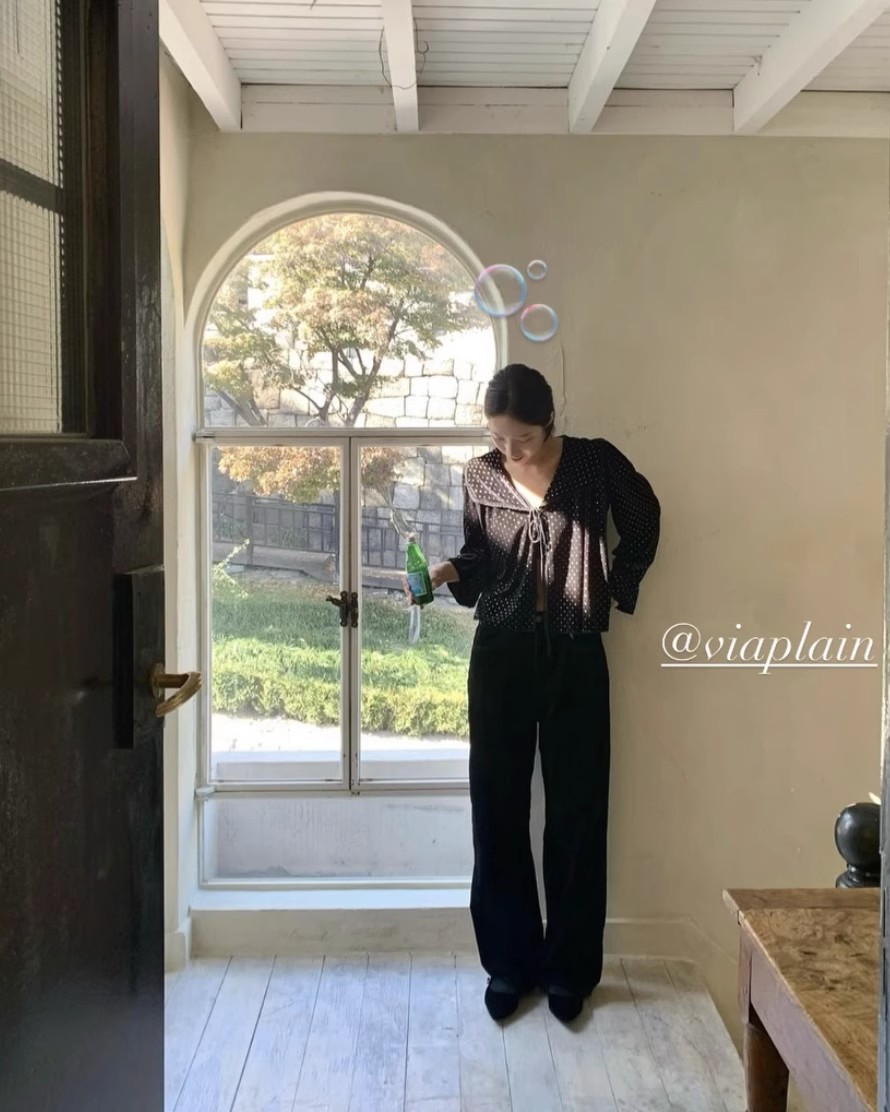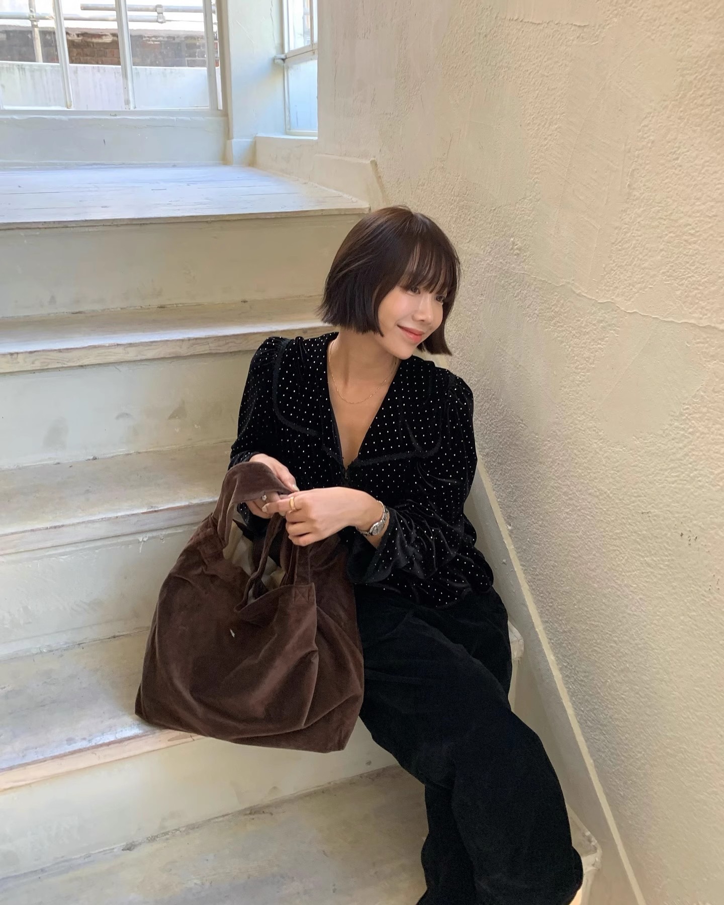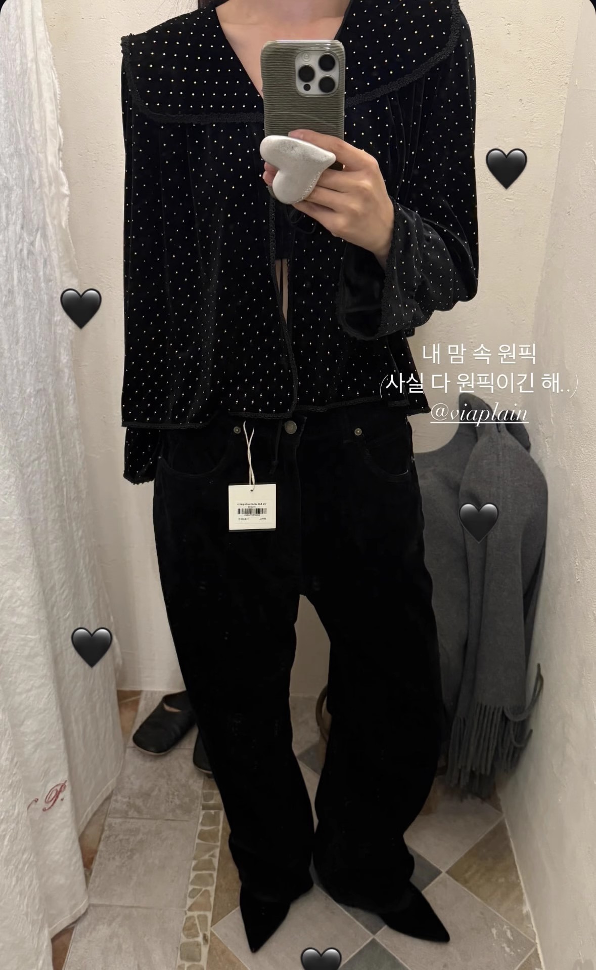 韩国 vi*plain 新款 STELLA 波点天鹅绒系带衬衫
