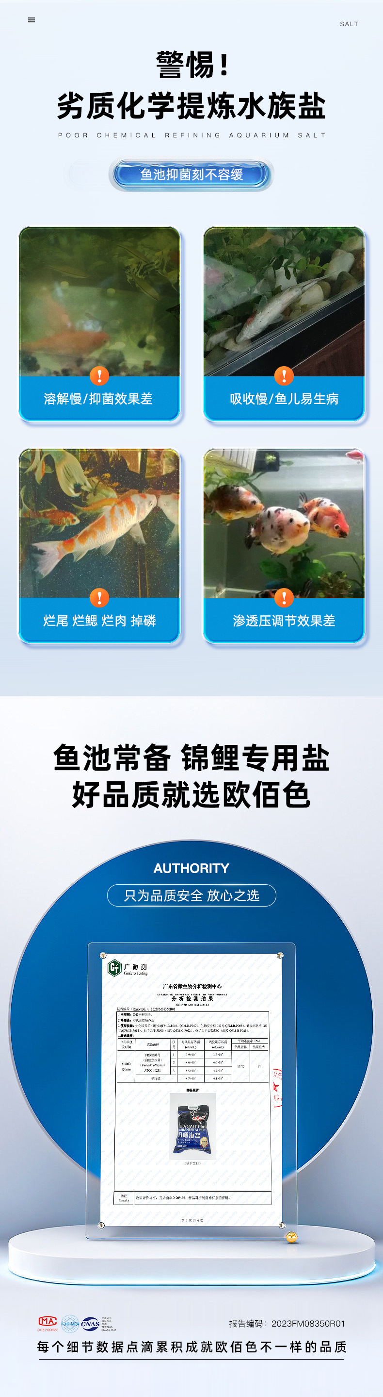 Ou Bai 컬러 잉어 연못 물고기 탱크 특수 소금 관상용 물고기 수족관 살균 소금 정수 소독 항균 조염 바다 소금스토어 가기