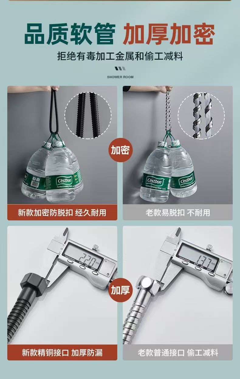 총 회색 PVC 샤워 호스 두꺼운 폭발 방지 샤워 유니버설 욕실 가정용 호텔 샤워 튜브