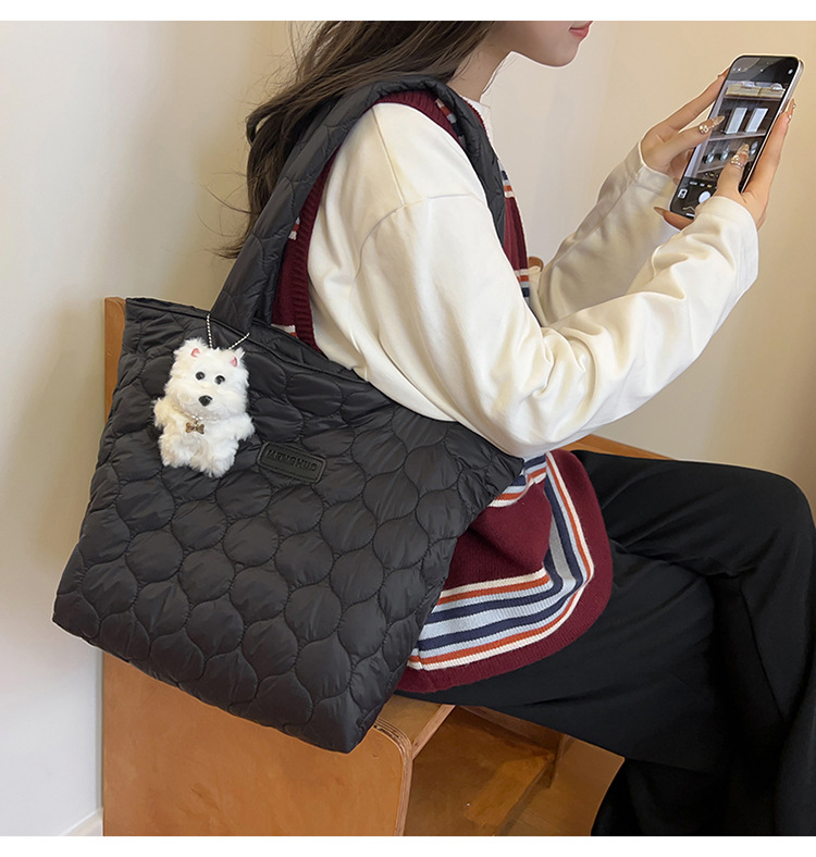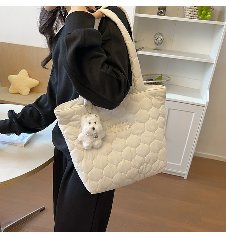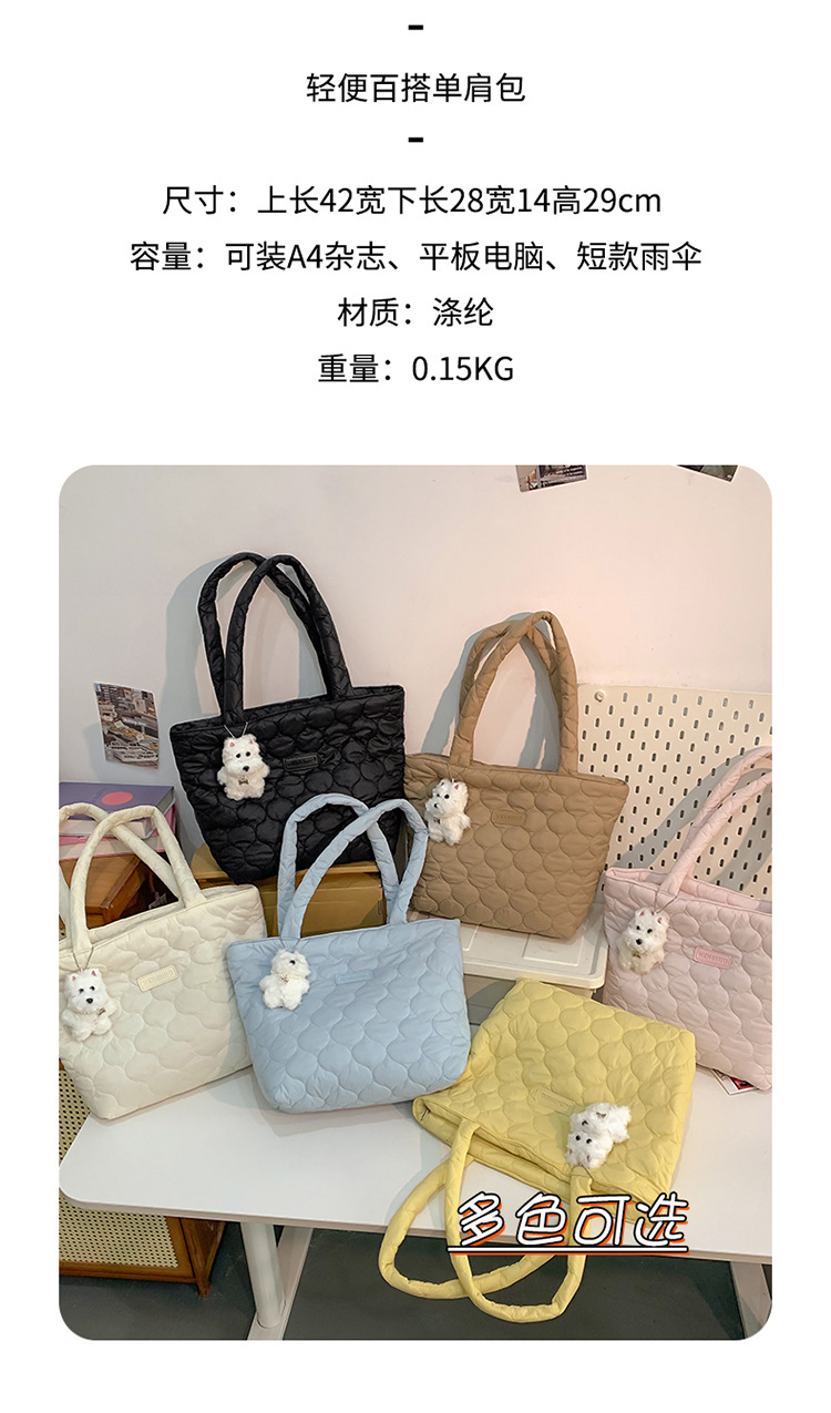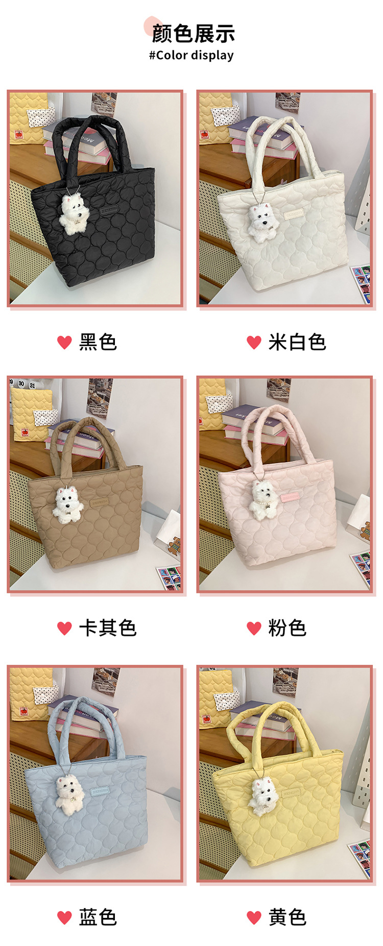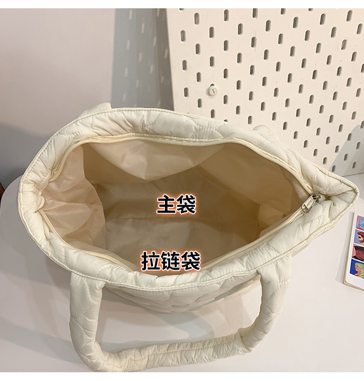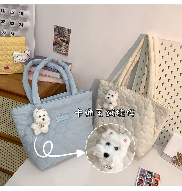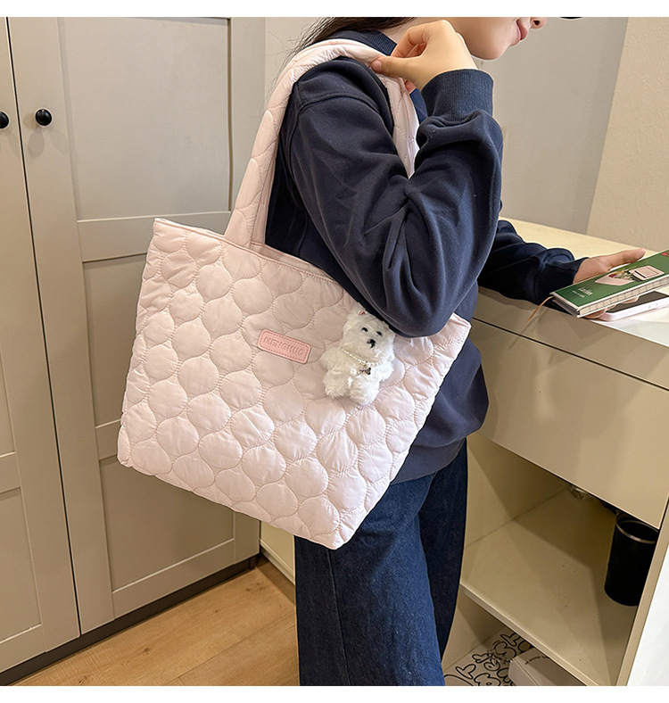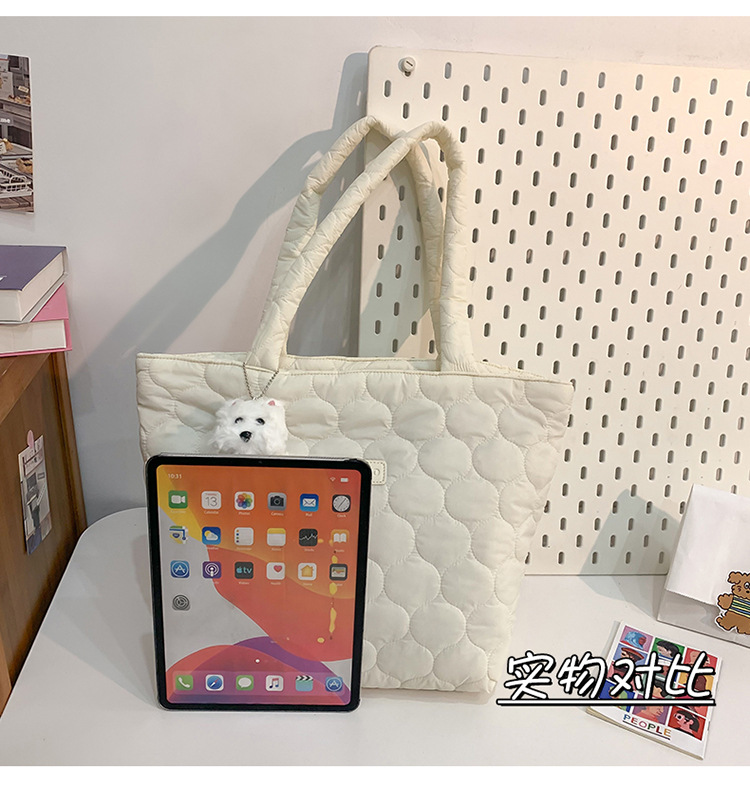 한국 스타일 달콤한 퀼팅 면 가방 토트백 인스 소녀 휴대용 숄더백 심플하고 신선한 대학생 수업 가방