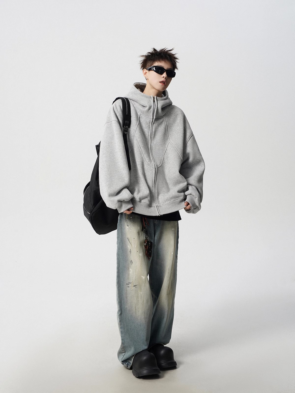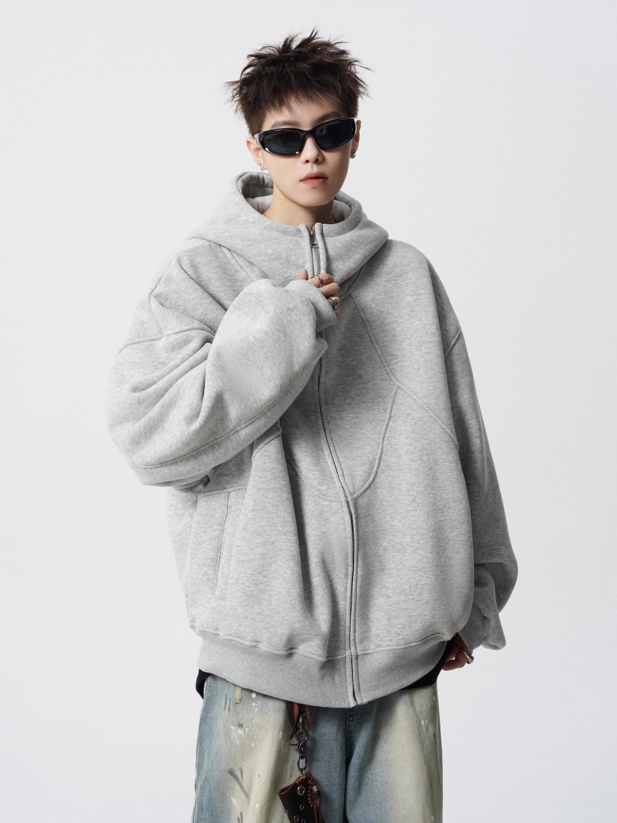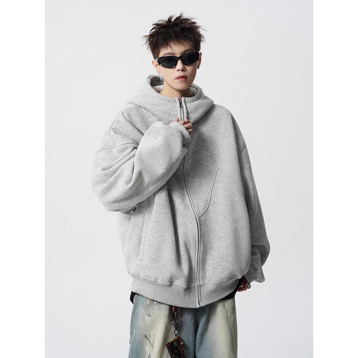 불규칙한 바느질 재킷 코트 남자의 겨울 미국 스타일 디자인 센스 기모 후드 트렌디 브랜드 올 매치 캐주얼 스웨터스토어 가기