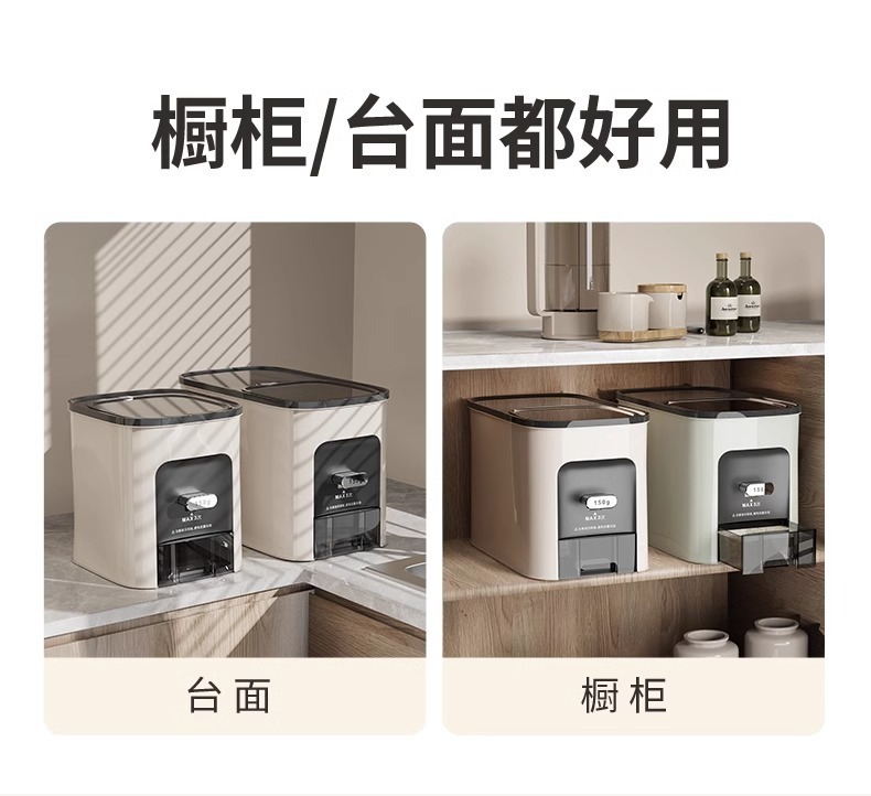 L 새로운 스타일의 주방 캐비닛 쌀 버킷 프레스 유형 정량 쌀 가정용 식품 등급 곤충 방지 수분 밀봉 저장 쌀 X20