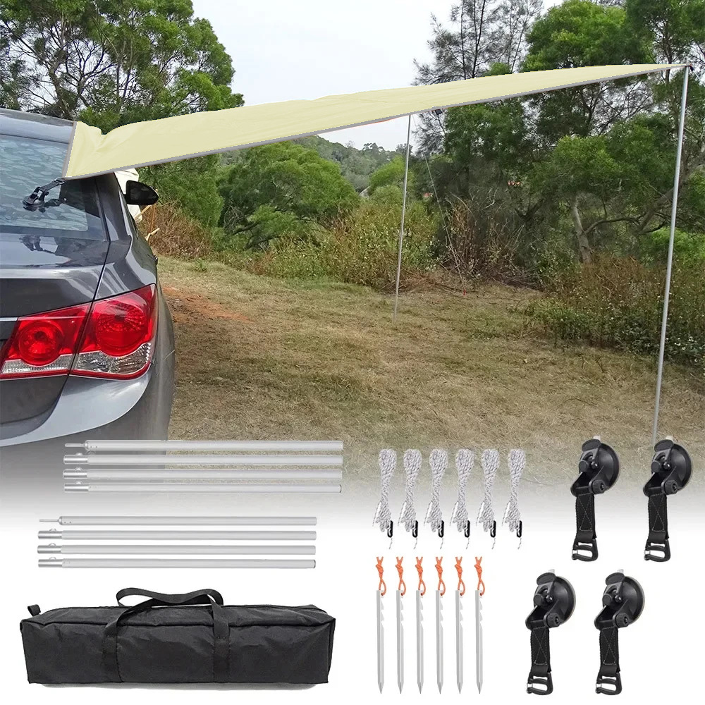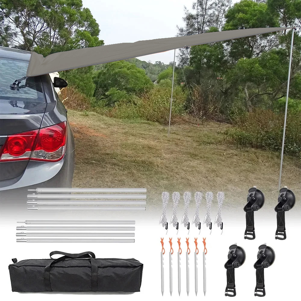 자동차 사이드 캐노피 실버 코팅 suv 자동차 사이드 텐트 5-8 명 캠핑 차양 pergola 야외 흡입 컵 자동차 사이드 텐트