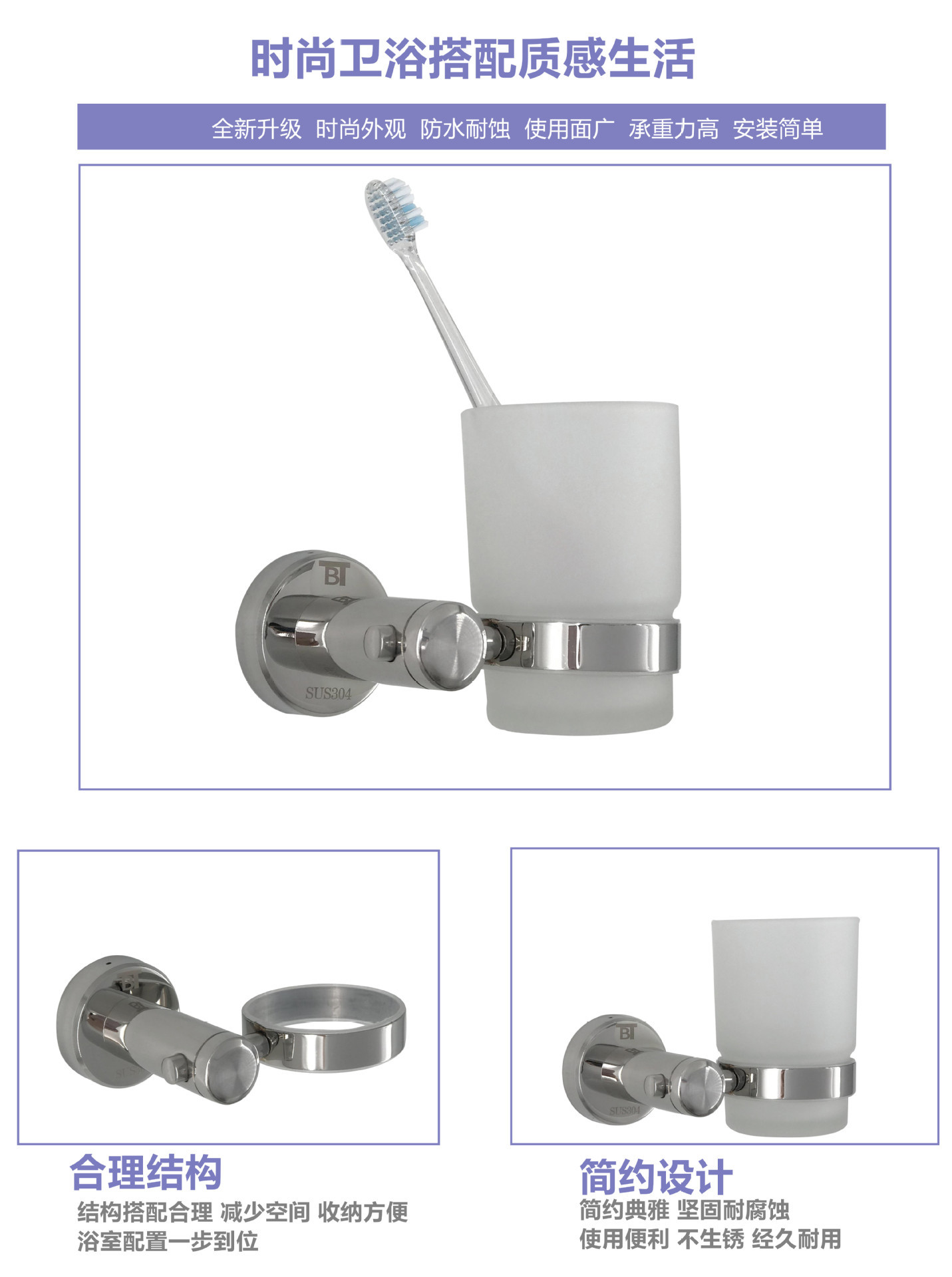 Qiaosheng 욕실 304 스테인레스 스틸 욕실 가글 컵 랙 싱글 컵 화장실 유리 칫솔 컵 칫솔 랙 벽 교수형