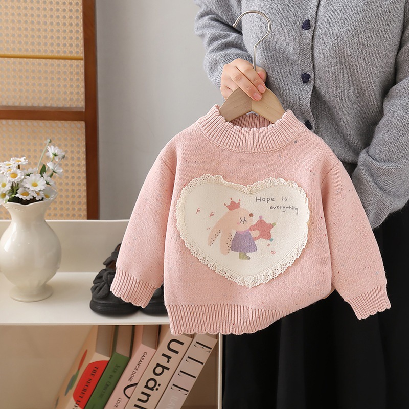 겨울 소녀 스웨터 원피스 벨벳 크루 넥 내부 2024 새로운 어린이 니트 탑 풀오버 만화 재고스토어 가기