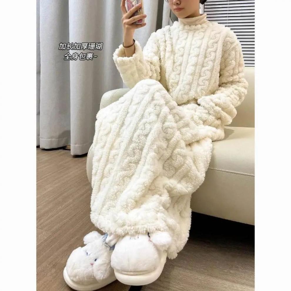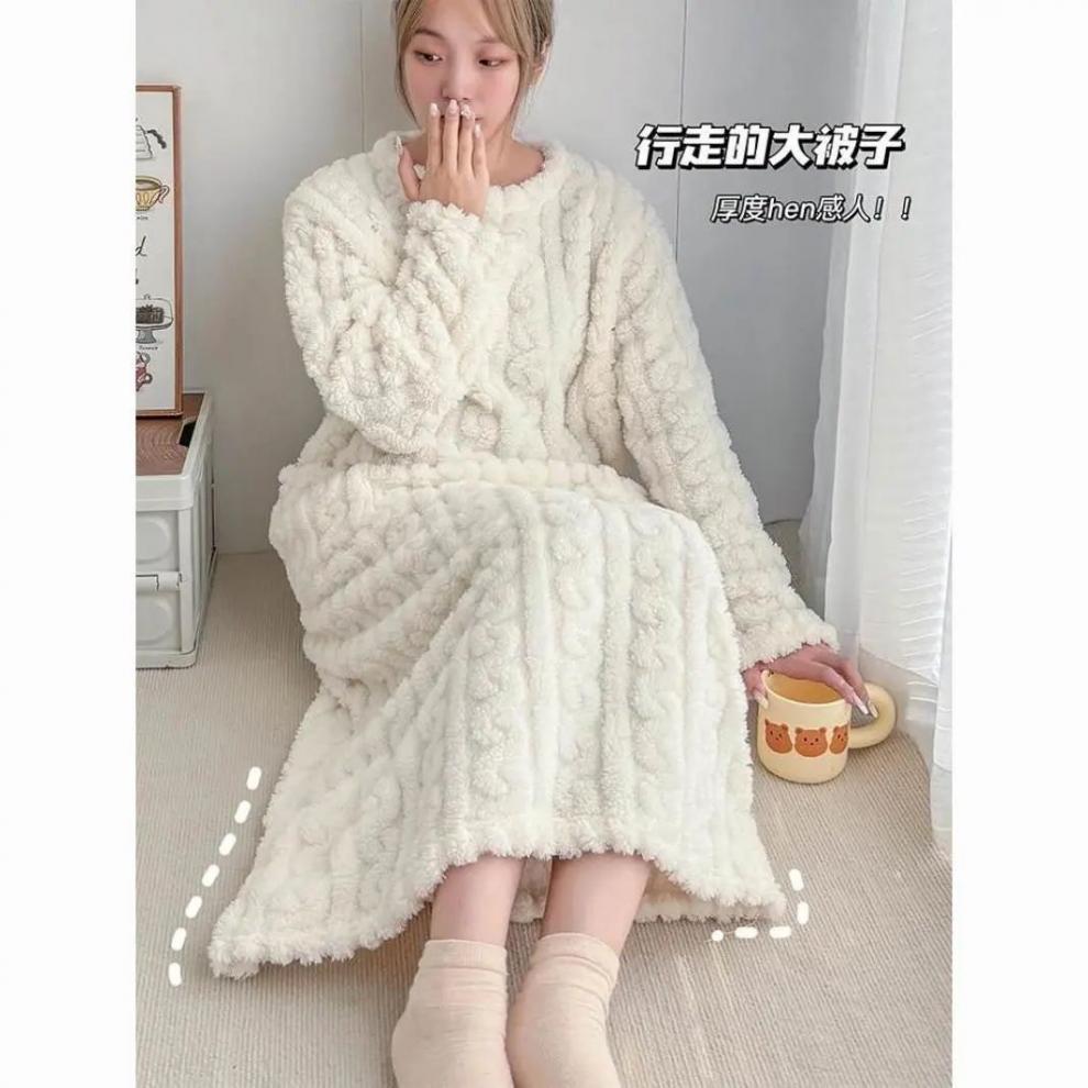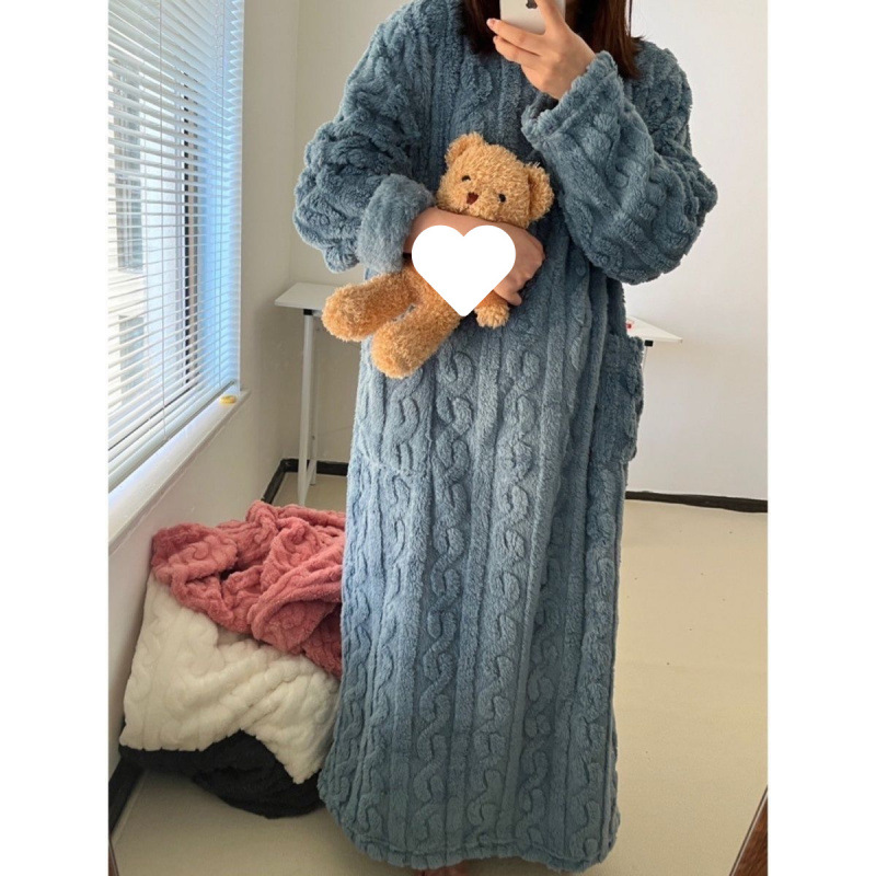 걷는 이불 Hu 벨벳 자카드 긴 느슨한 포켓 홈 잠옷 잠옷 여성 겨울 잠옷