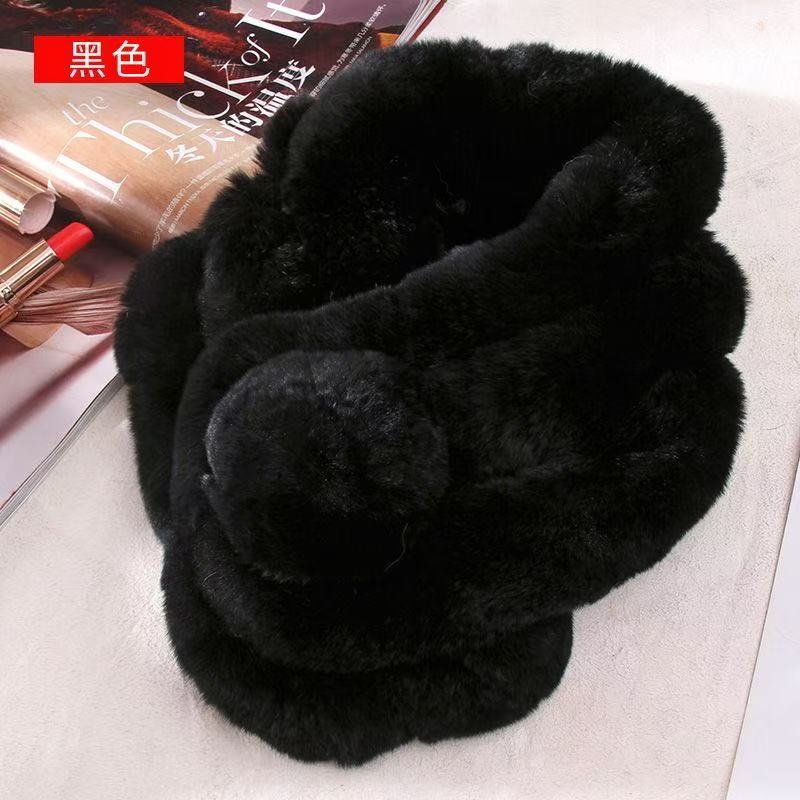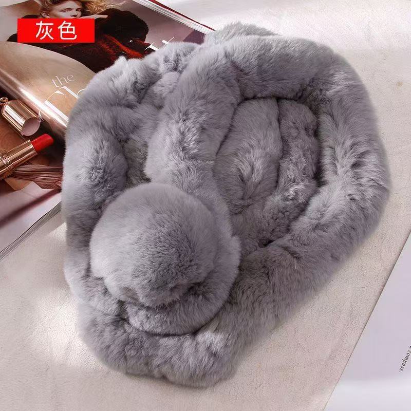 한국 겨울용 따뜻한 모피 목도리 고밀도 천연 렉스 토끼털 삼중 볼 모피 스카프 겨울 신상품