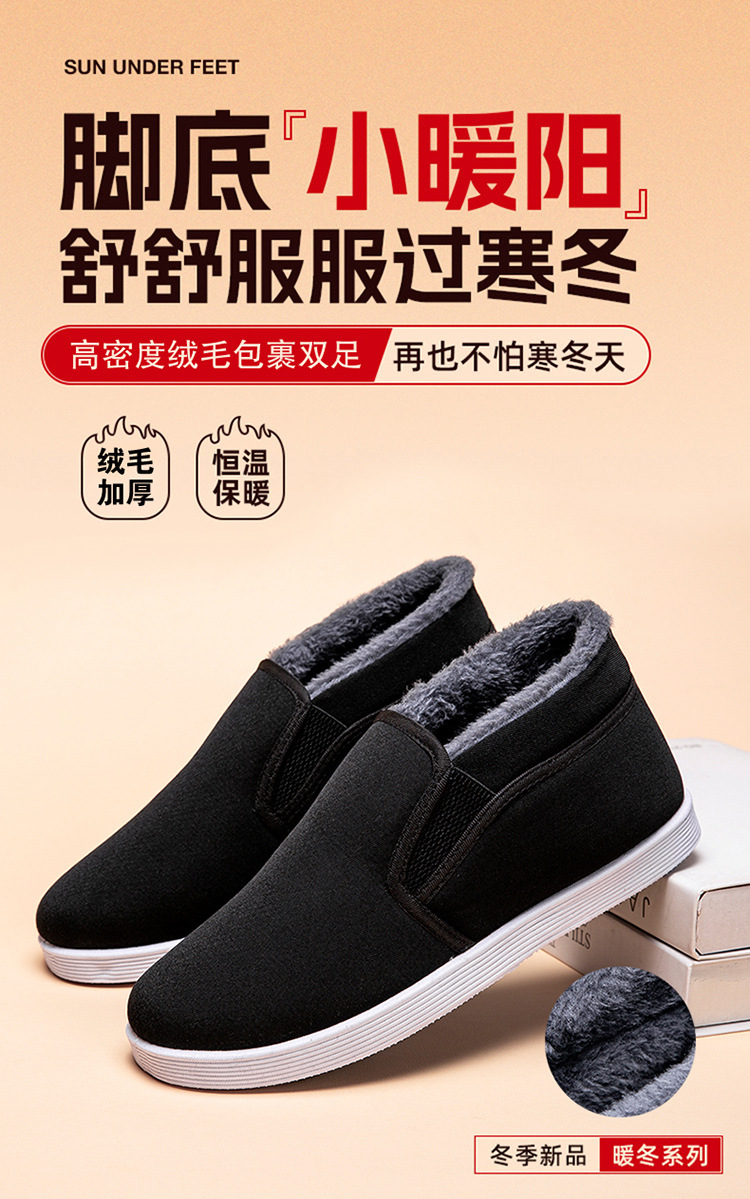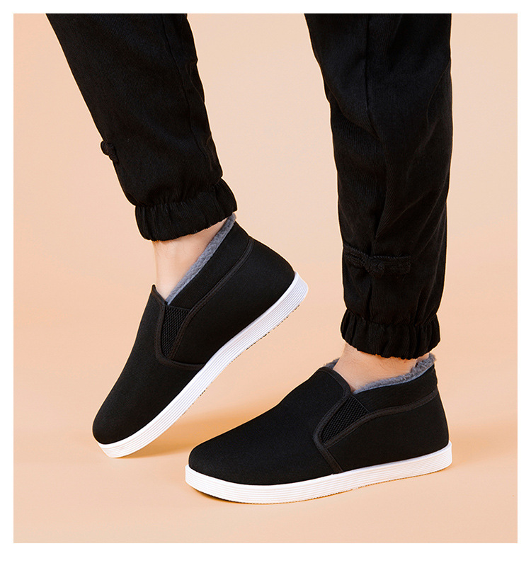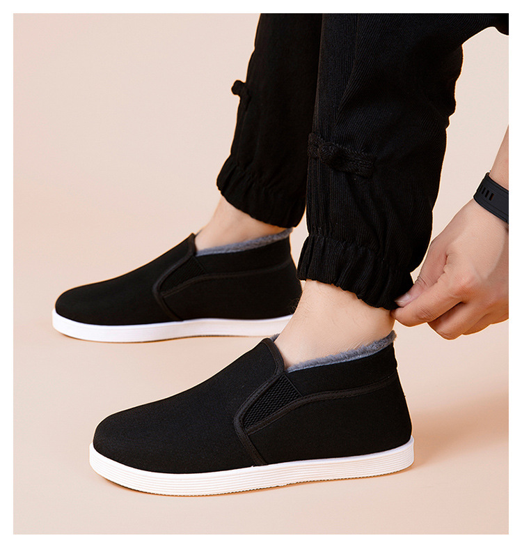 겨울 하이 탑 코튼 신발 미끄럼 방지 슬립 온 기모 따뜻한 코튼 부츠 두껍게 오래된 작업 베이징 천 신발스토어 가기