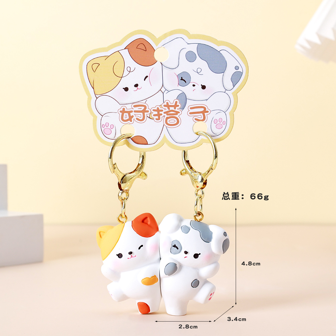 • 자석 열쇠고리-[고양이와 강아지가 잘 어울린다]