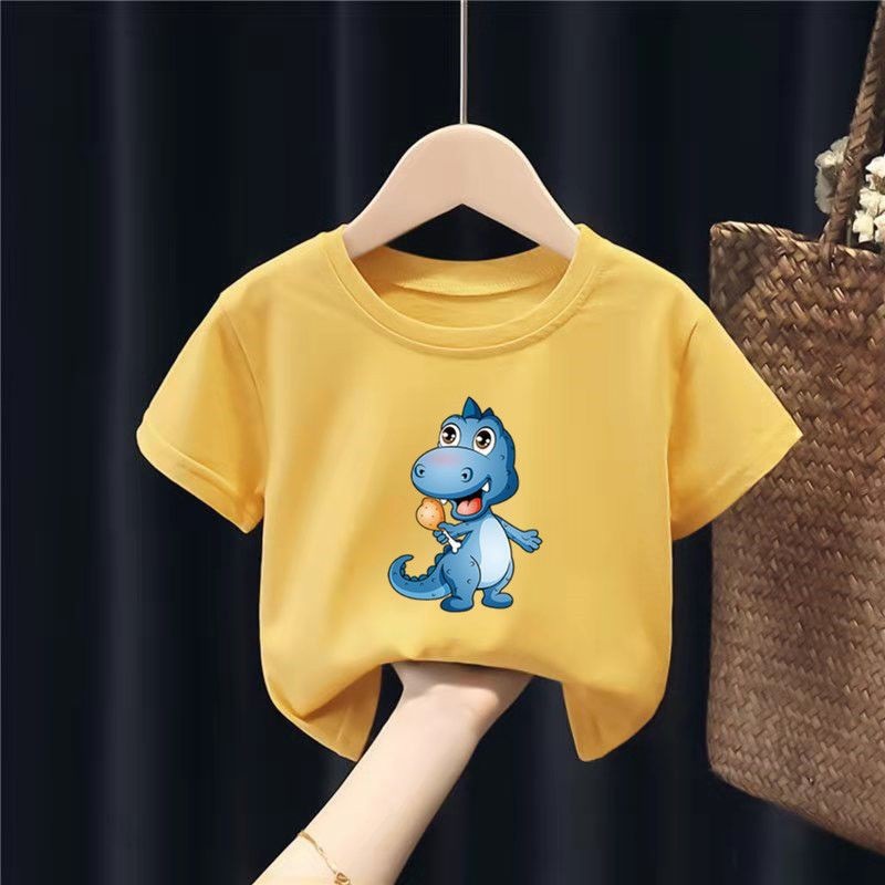 퓨어 코튼 티셔츠 소녀 소년 아기 여름 작고 큰 어린이 반팔 티셔츠 새로운 만화 서양식 탑스토어 가기