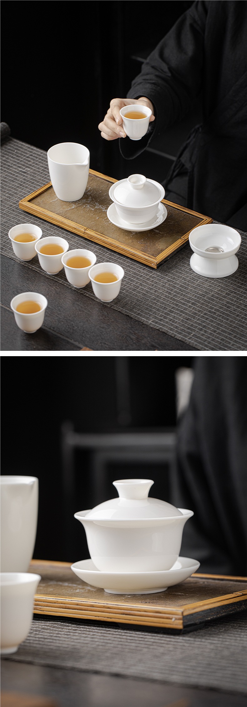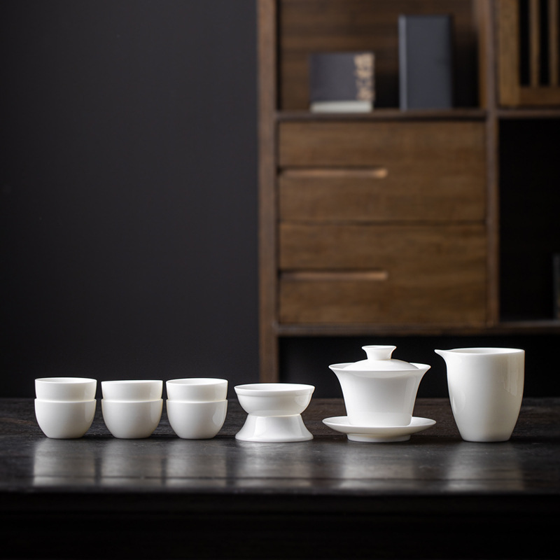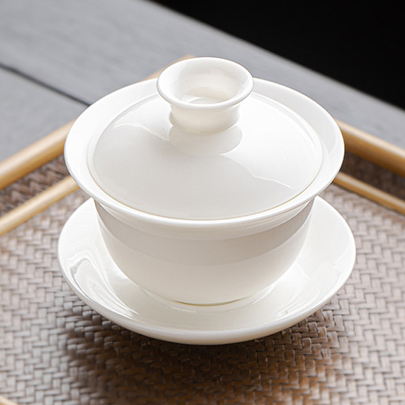 양 지방 옥 화이트 도자기 커버 그릇 차 컵 세라믹 차 세트 대형 차 메이커 가정용 쿵푸 산 사이 차 차 다도 루이
