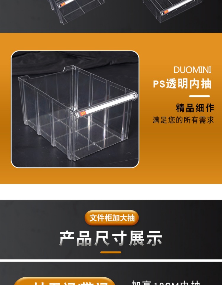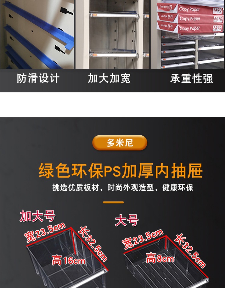• 문이 없는 75개의 서랍 조합(4+8+12+16cm) 확대되고 두꺼워진 서랍