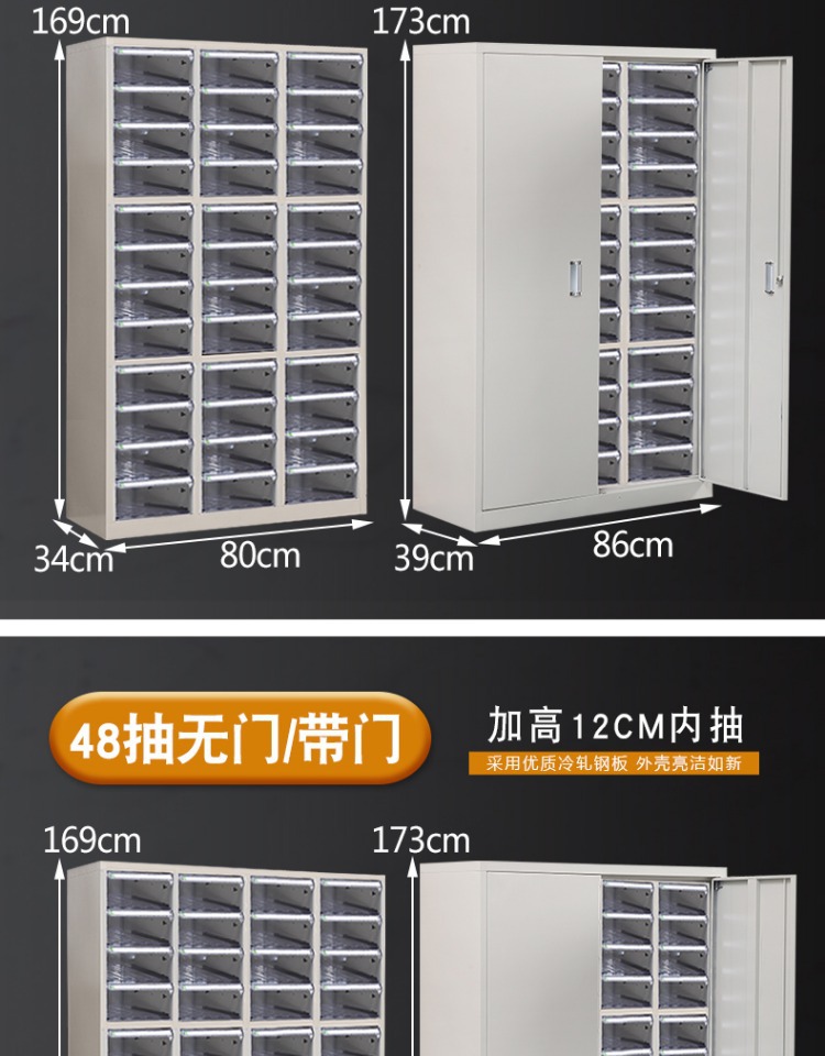 • 문이 있는 서랍 48개(서랍 높이 12cm)(확대 및 두꺼워짐)