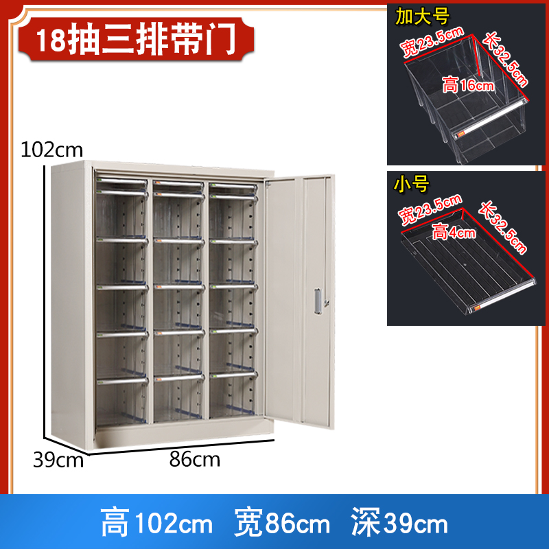 • 문이 있는 서랍 18개(서랍 높이 12cm)(확대 및 두꺼워짐)