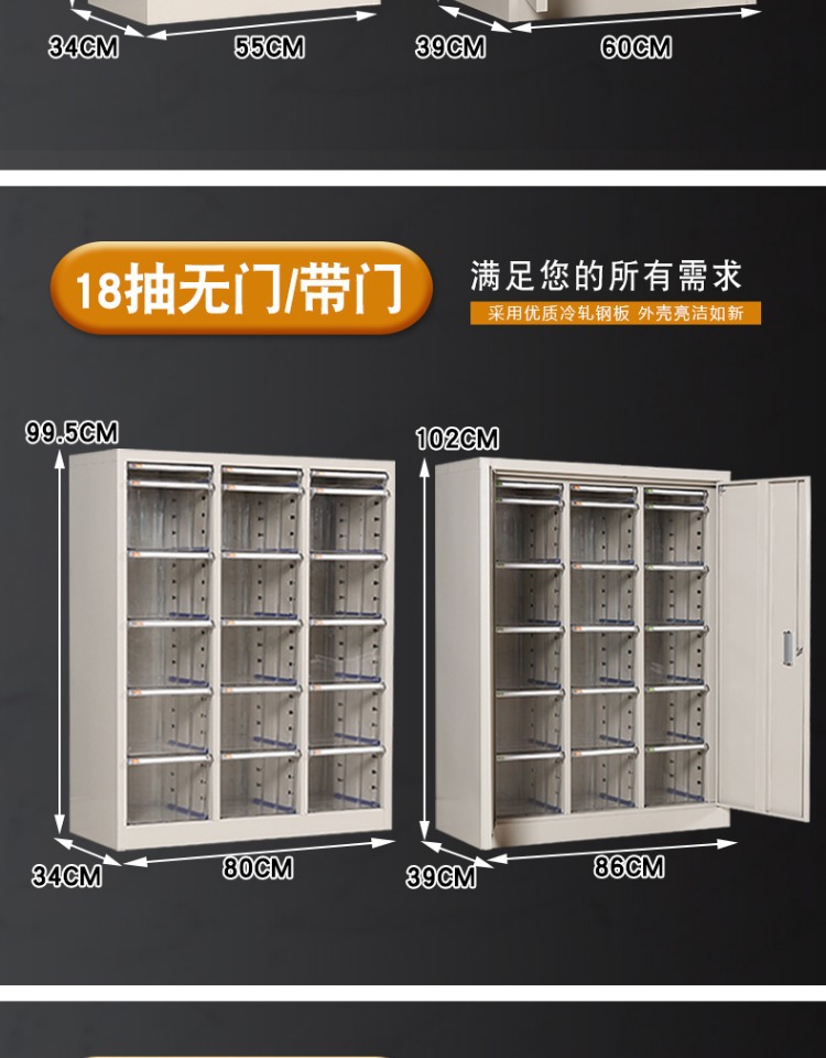 • 문이 없는 서랍 18개(서랍 높이 4+16cm)(확대 및 두꺼워짐)