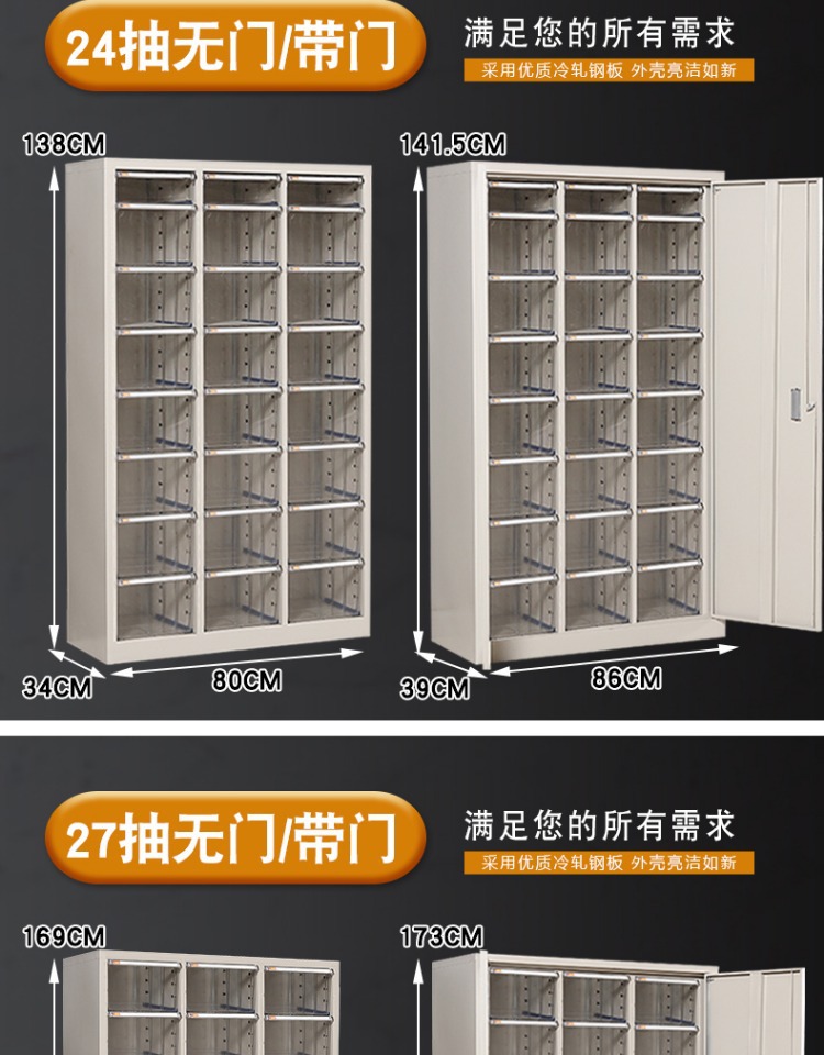 • 문이 없는 서랍 24개(서랍 높이 8+16cm)(확대 및 두꺼워짐)