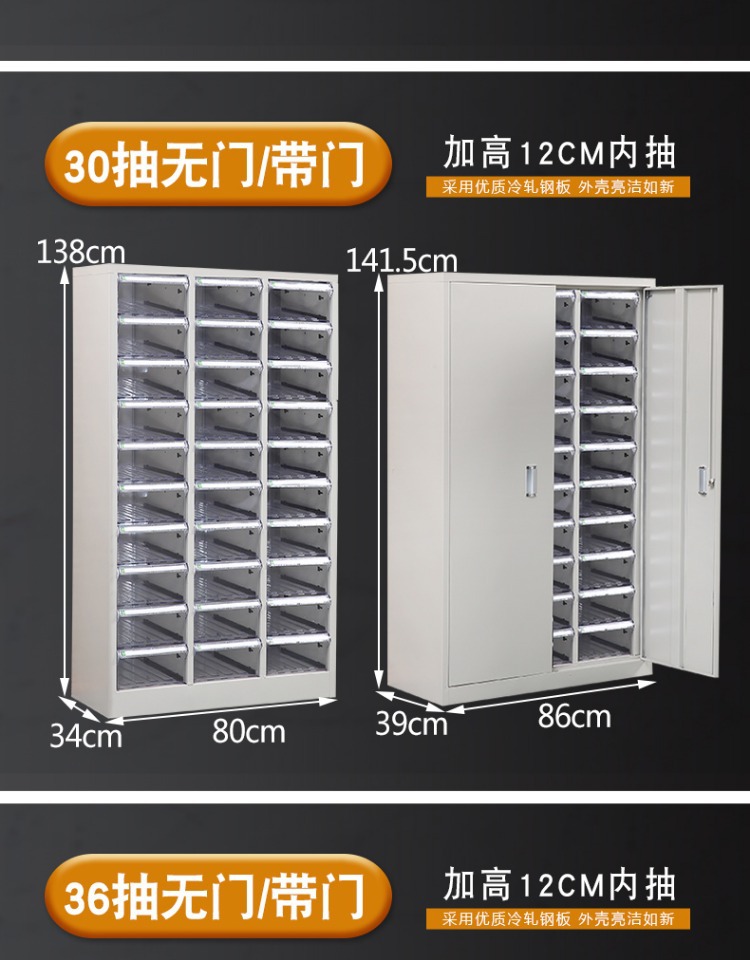 • 문이 있는 서랍 36개(서랍 높이 12cm)(확대 및 두꺼워짐)