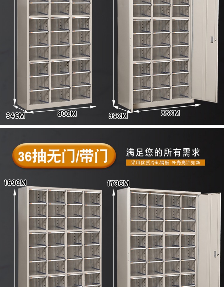 • 문이 있는 서랍 36개(서랍 높이 16cm)(확대 및 두꺼워짐)