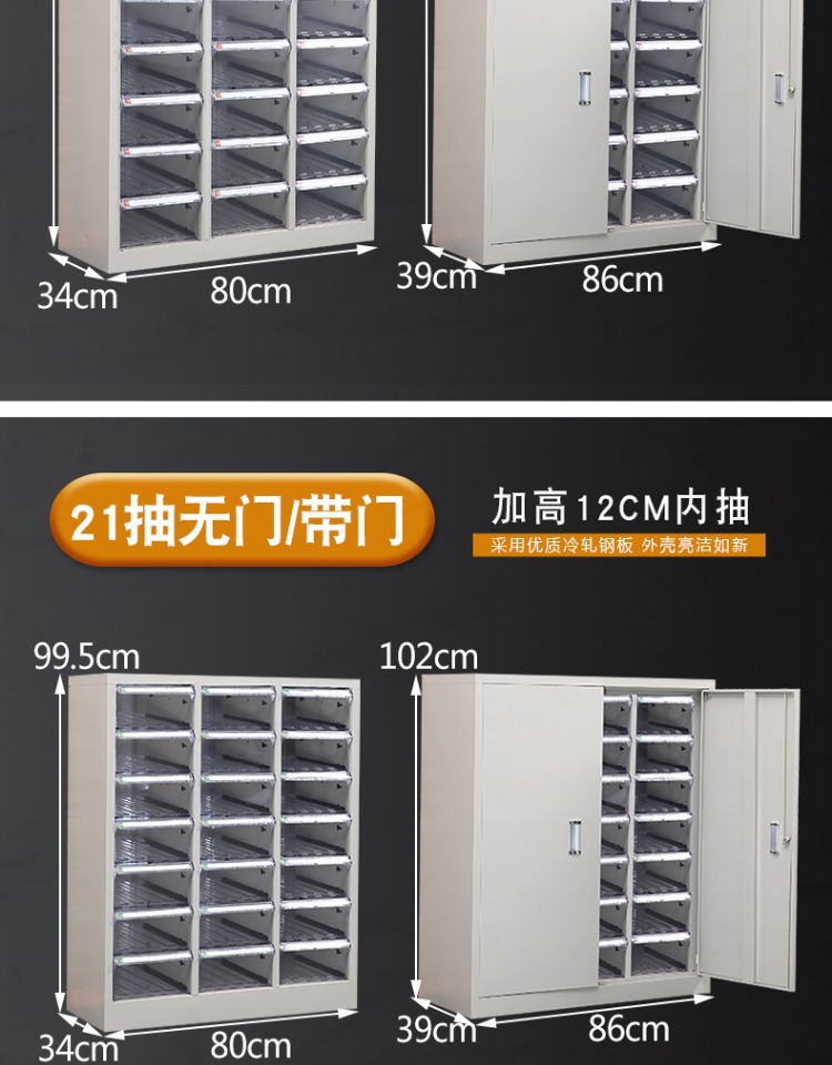 • 문이 있는 서랍 21개(서랍 높이 12cm)(확대 및 두꺼워짐)