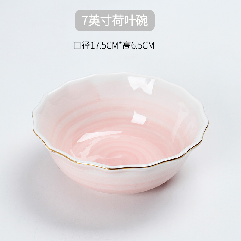 • 7inch 핑크 연잎 둥근 그릇
