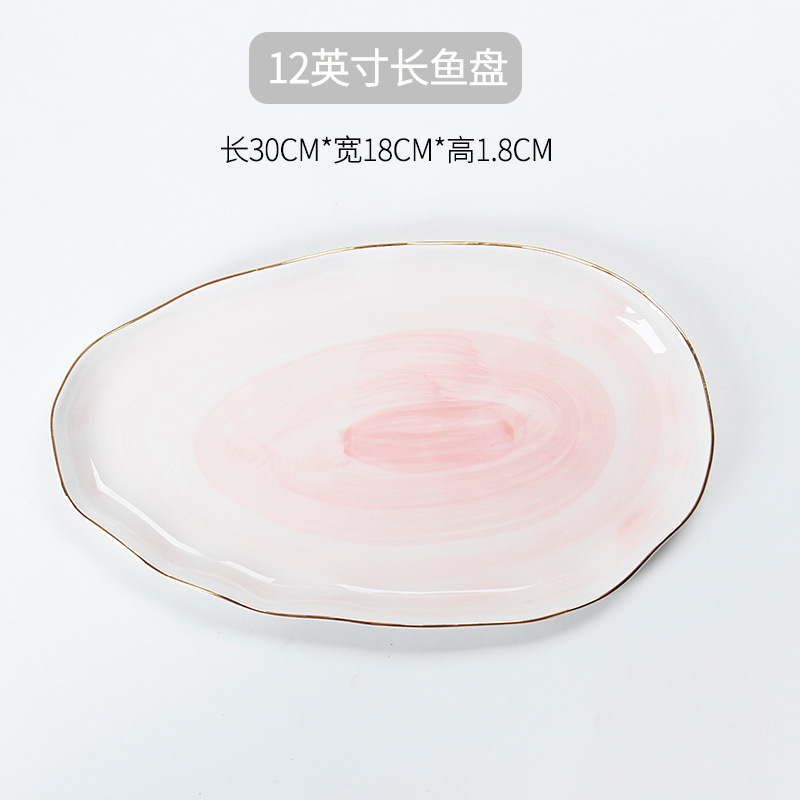 • 12inch 핑크색 긴 물고기 접시